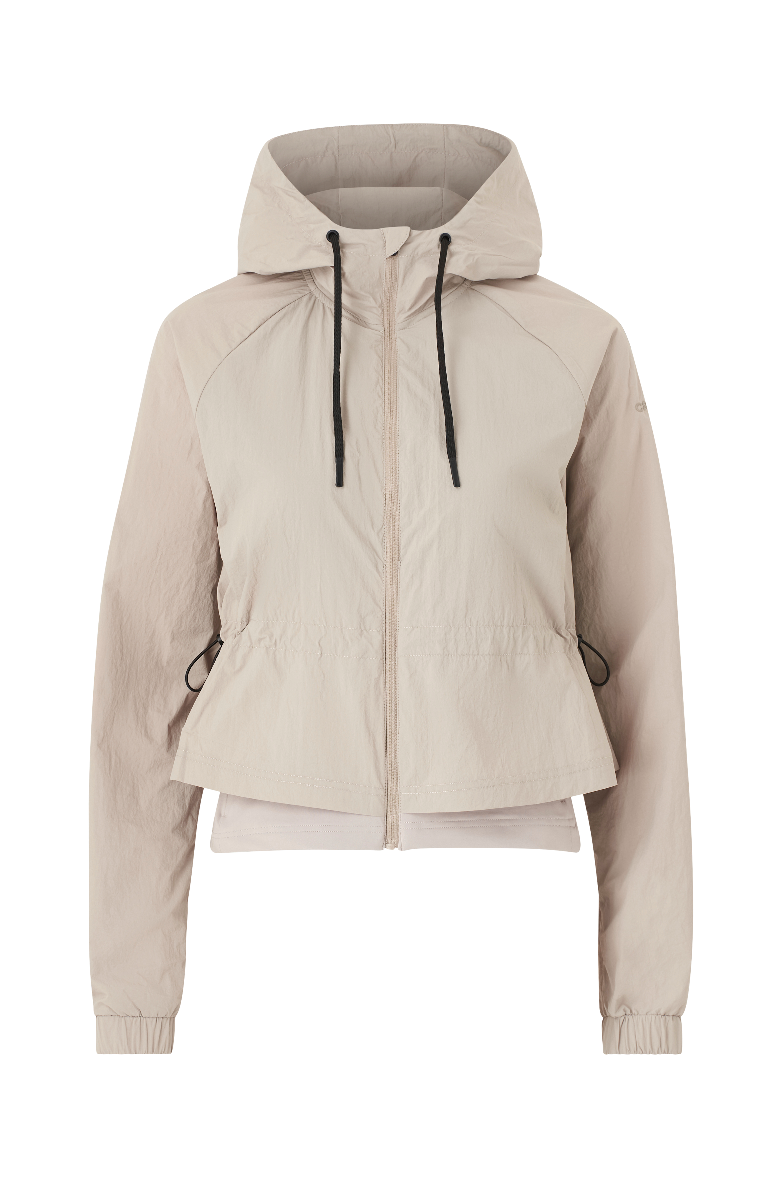 • Lett, tynn, vindtett vindjakke med bred passform• Fukttransporterende foring i mesh• Fast hette med snøring• Glidelås• Korsett i stretchy jersey på bunnen• Snøring ved midjen• Skjulte sidelommer med glidelås