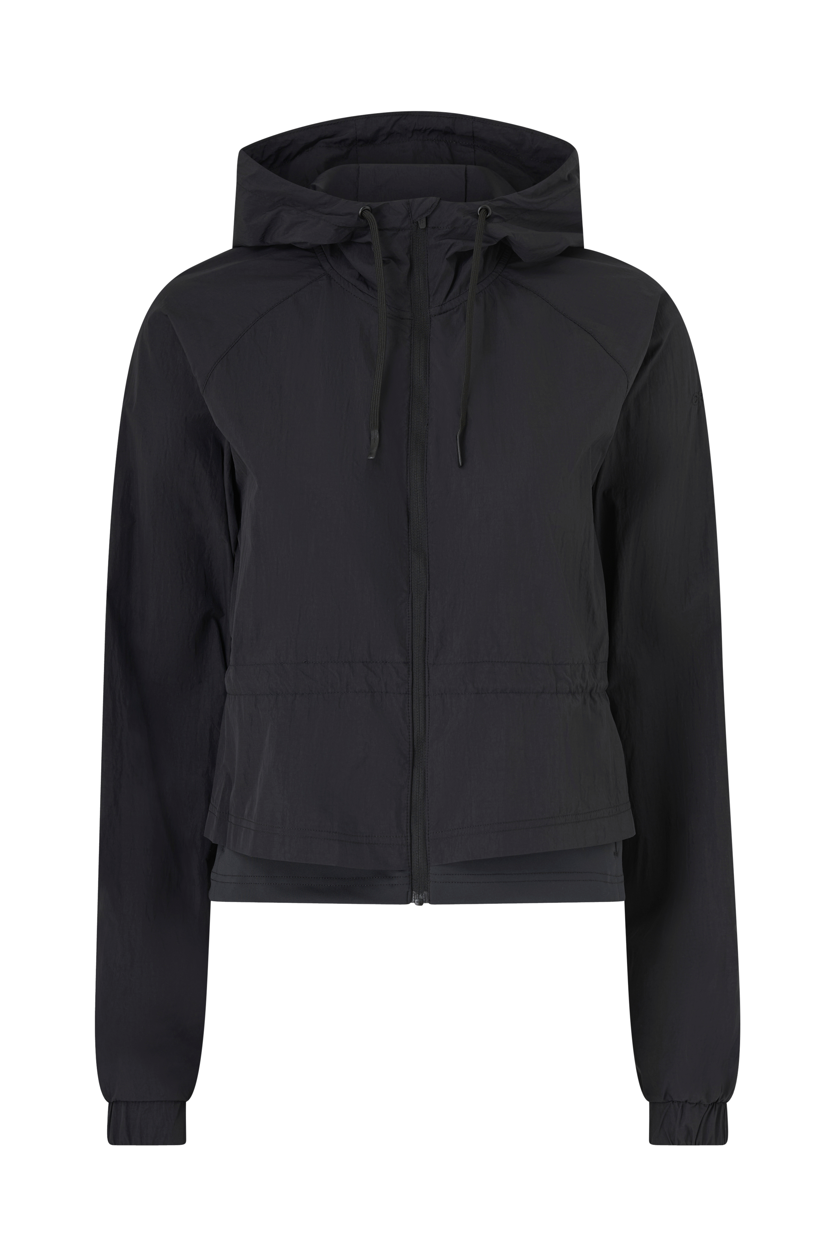• Lett, tynn, vindtett vindjakke med bred passform• Fukttransporterende foring i mesh• Fast hette med snøring• Glidelås• Korsett i stretchy jersey på bunnen• Snøring ved midjen• Skjulte sidelommer med glidelås