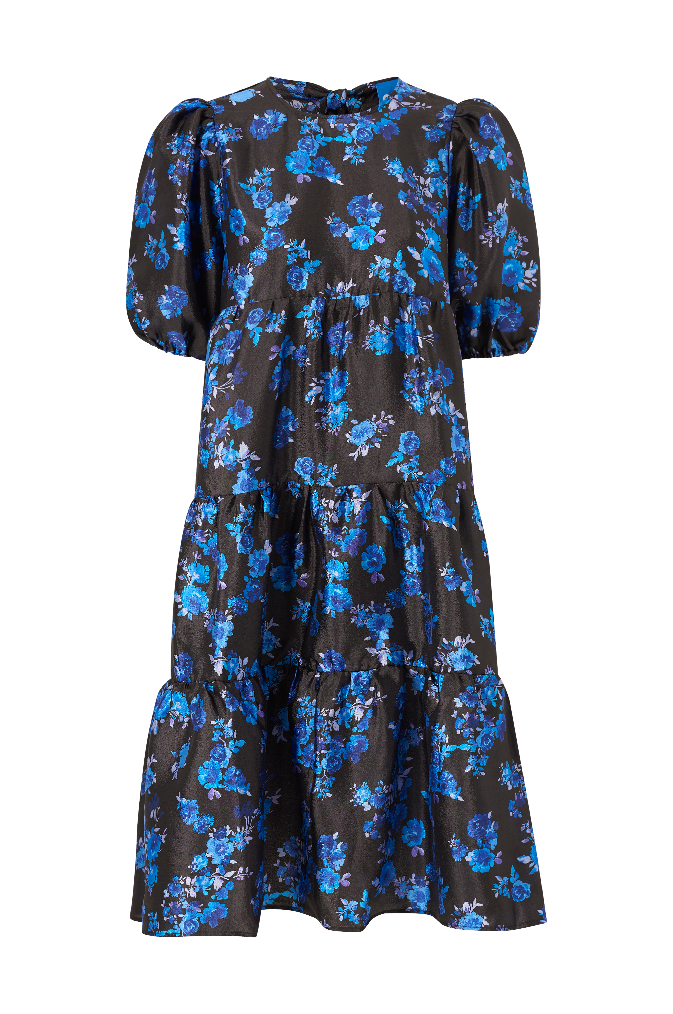 • Midikjole • Halvlange bobleermer • Åpning med knytbare stropper i nakken • Utsvingt skjørt med volanger • Kvalitet med lysskinn • Lengde: 113 cm i størrelse 36 • Produktet inneholder gjenvunnet materiale som er brukt for å redusere mengden avfall, samtidig som det ikke er brukt nye ressurser.