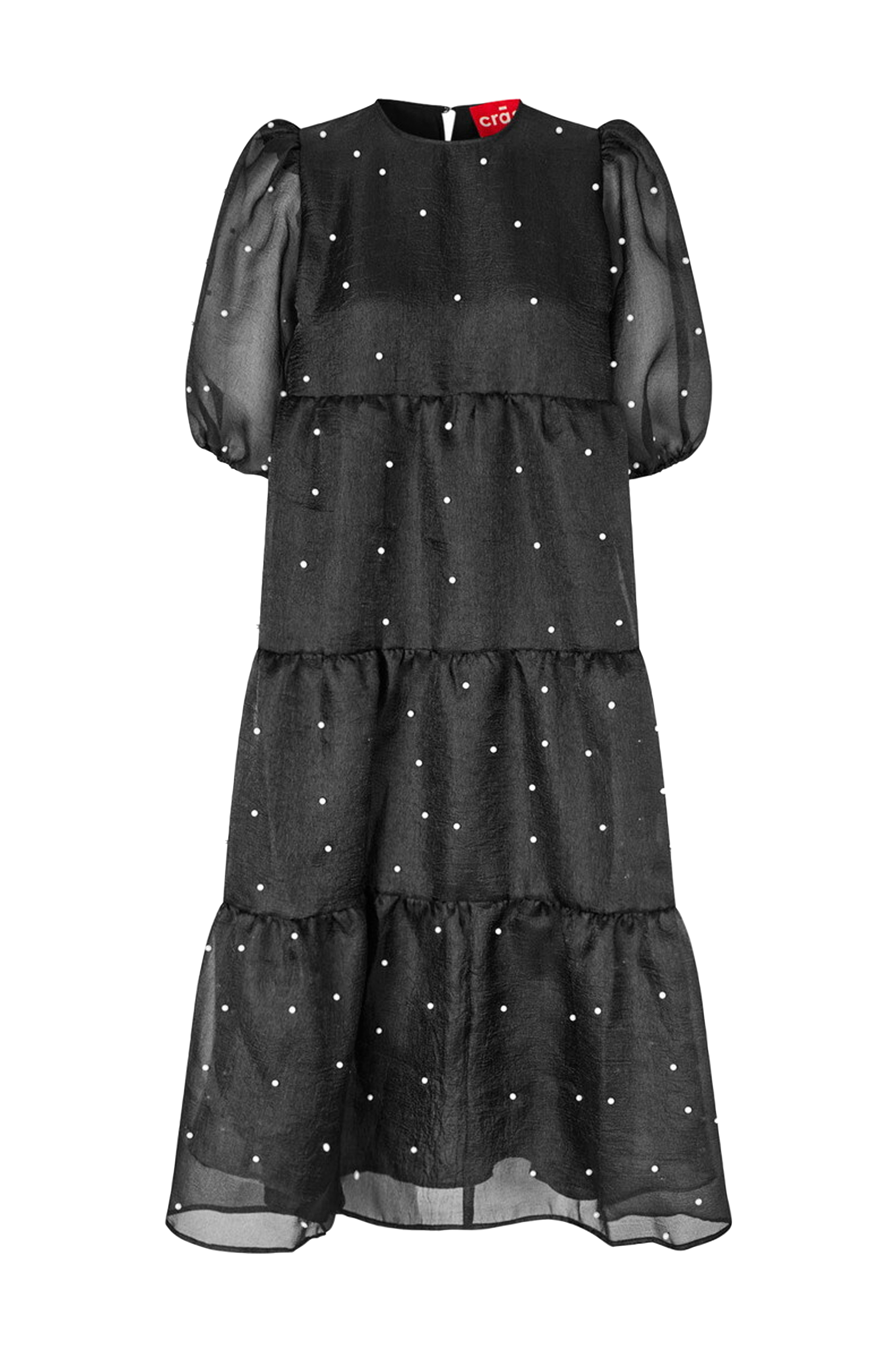 • Utsvingt modell med broderte, små perler overalt• Rund hals med knapp i nakken• Bred, kort bobleerme med gummistrikk i ermeslutten• Fôret• Lengde: 112 cm i størrelse 36
