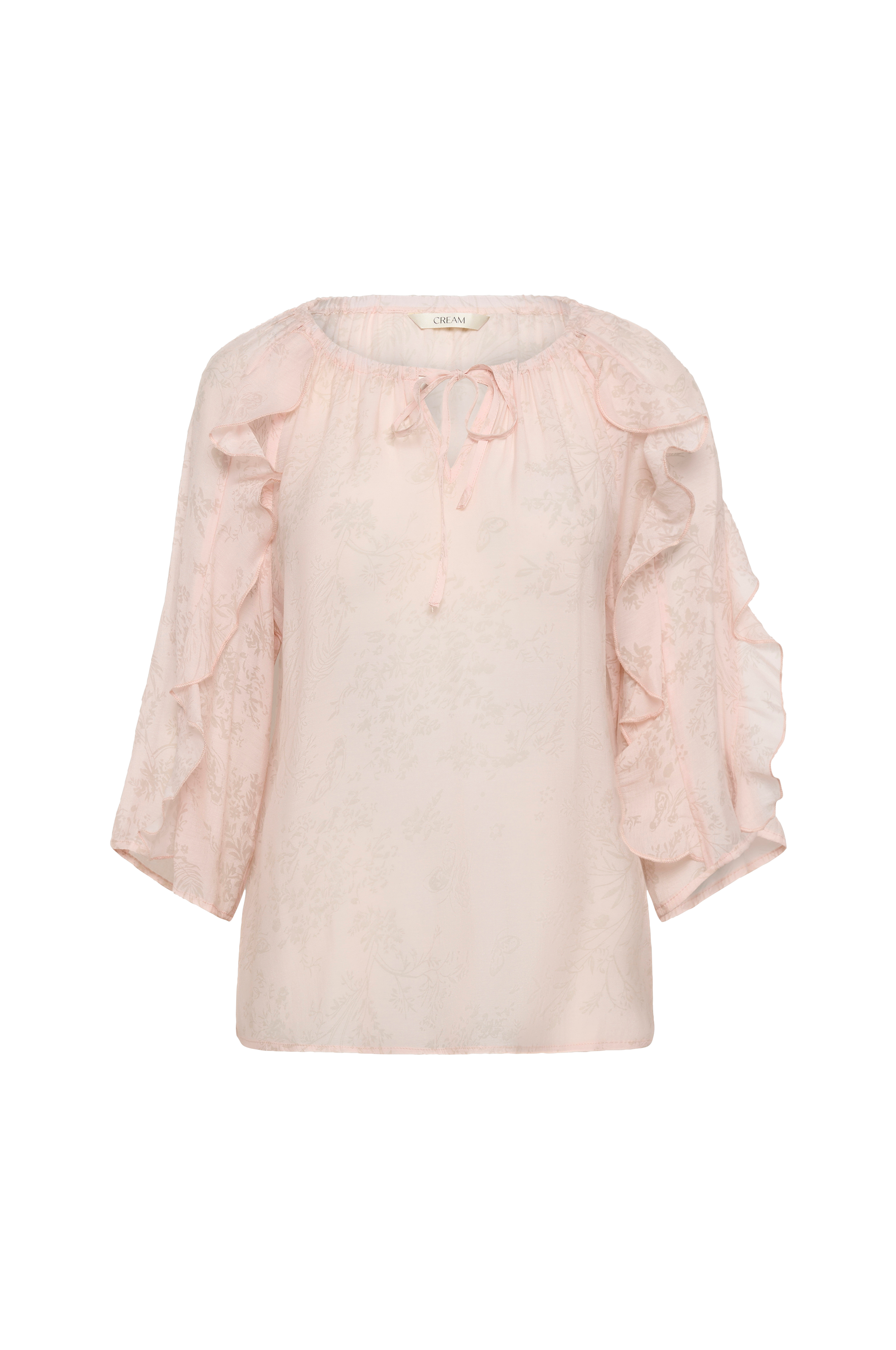 • Semitransparent bluse• Snøring i halsen• Ermer 3/4 lang med volang