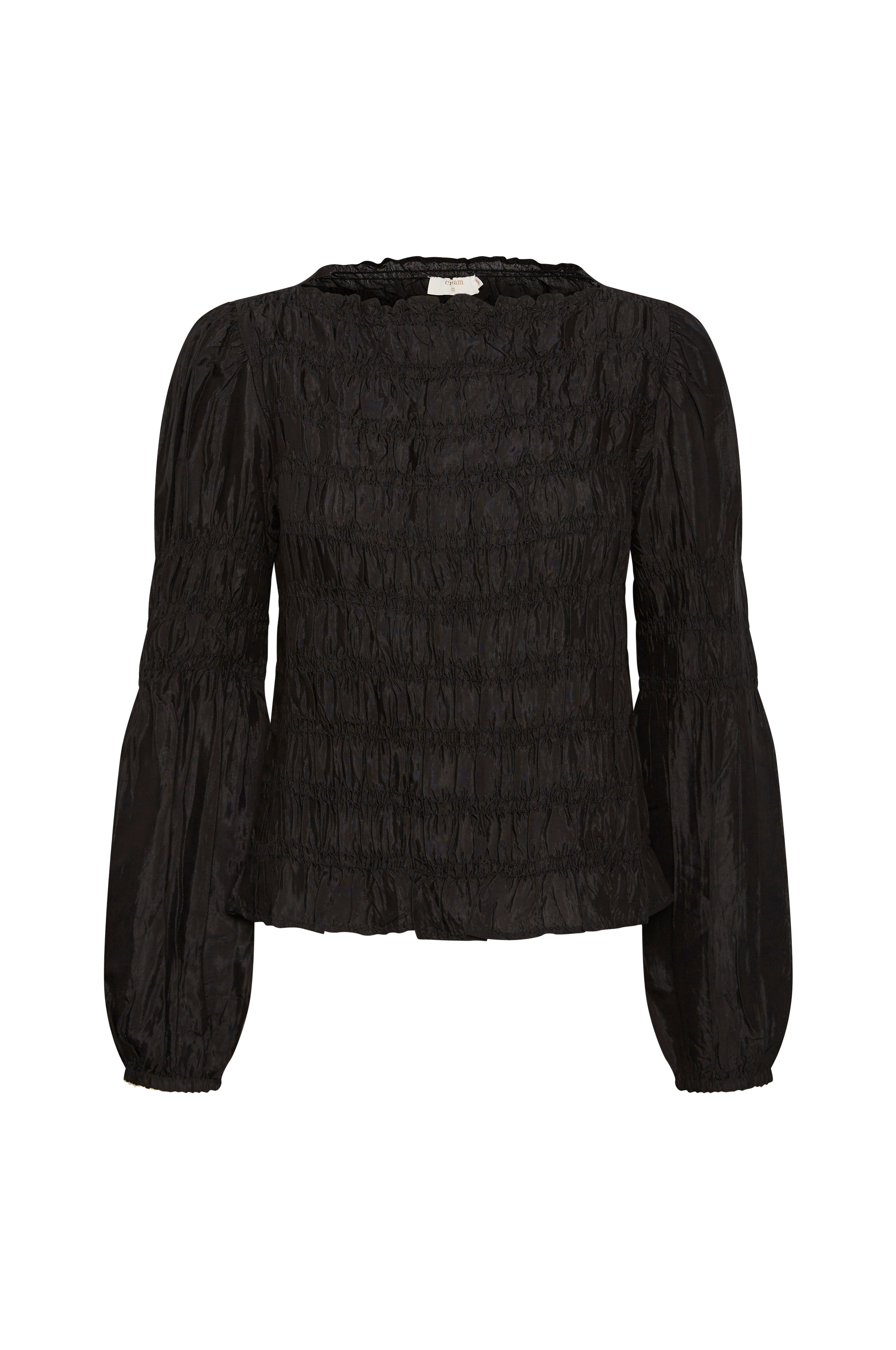 Bluse crHenva Blouse fra Cream. Rett modell i vevd kvalitet med strikksømmer både foran og bak. Vid båthals og ekstra vide ermer med strikksømmer øverst og innfelt strikk i ermekantene.