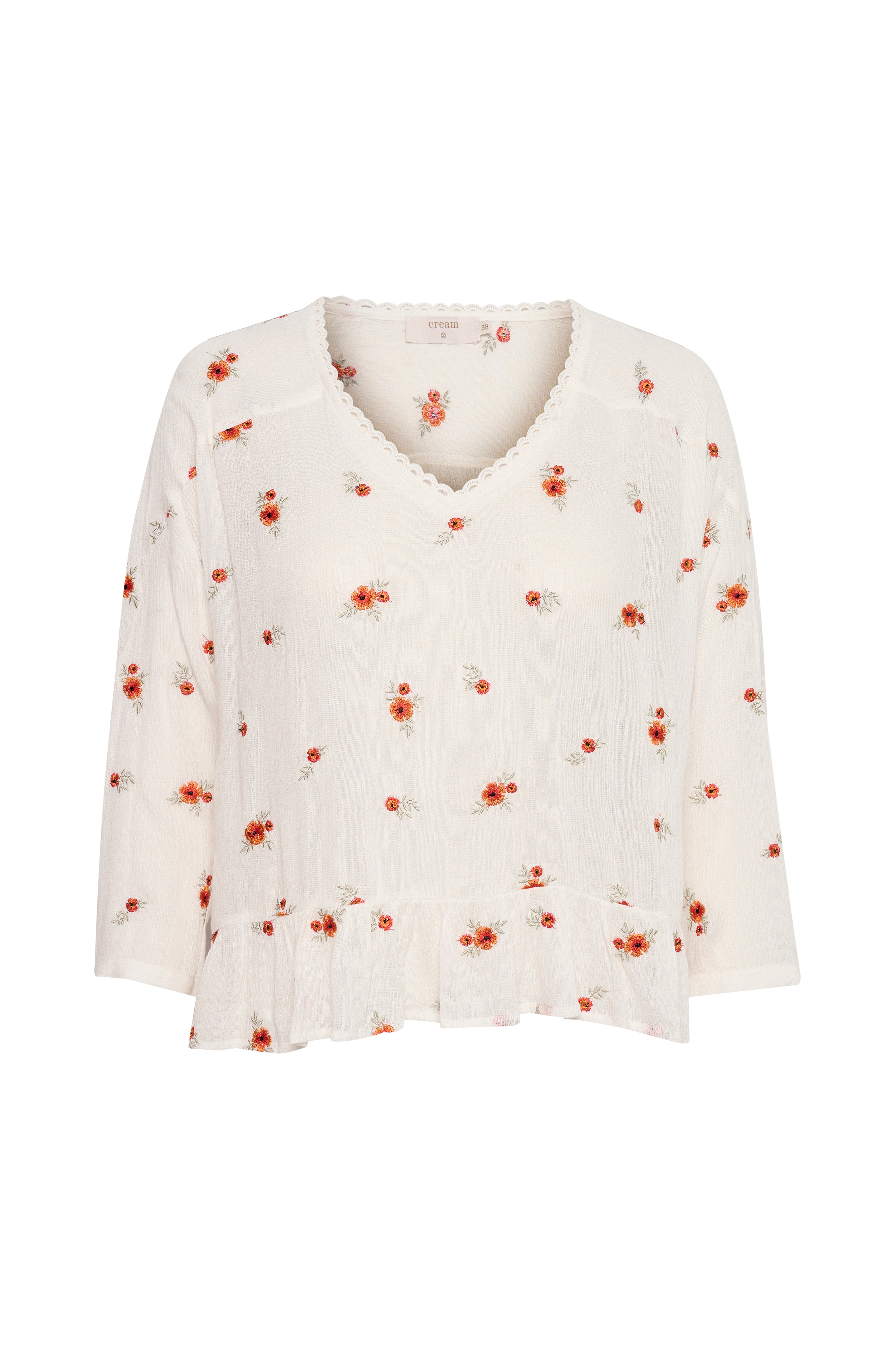 • Bred, brodert modell i krepp• V-formet hals med tynne blonder• Rett arm 3/4 lang med tynn mansjett• Volang i nedre kant