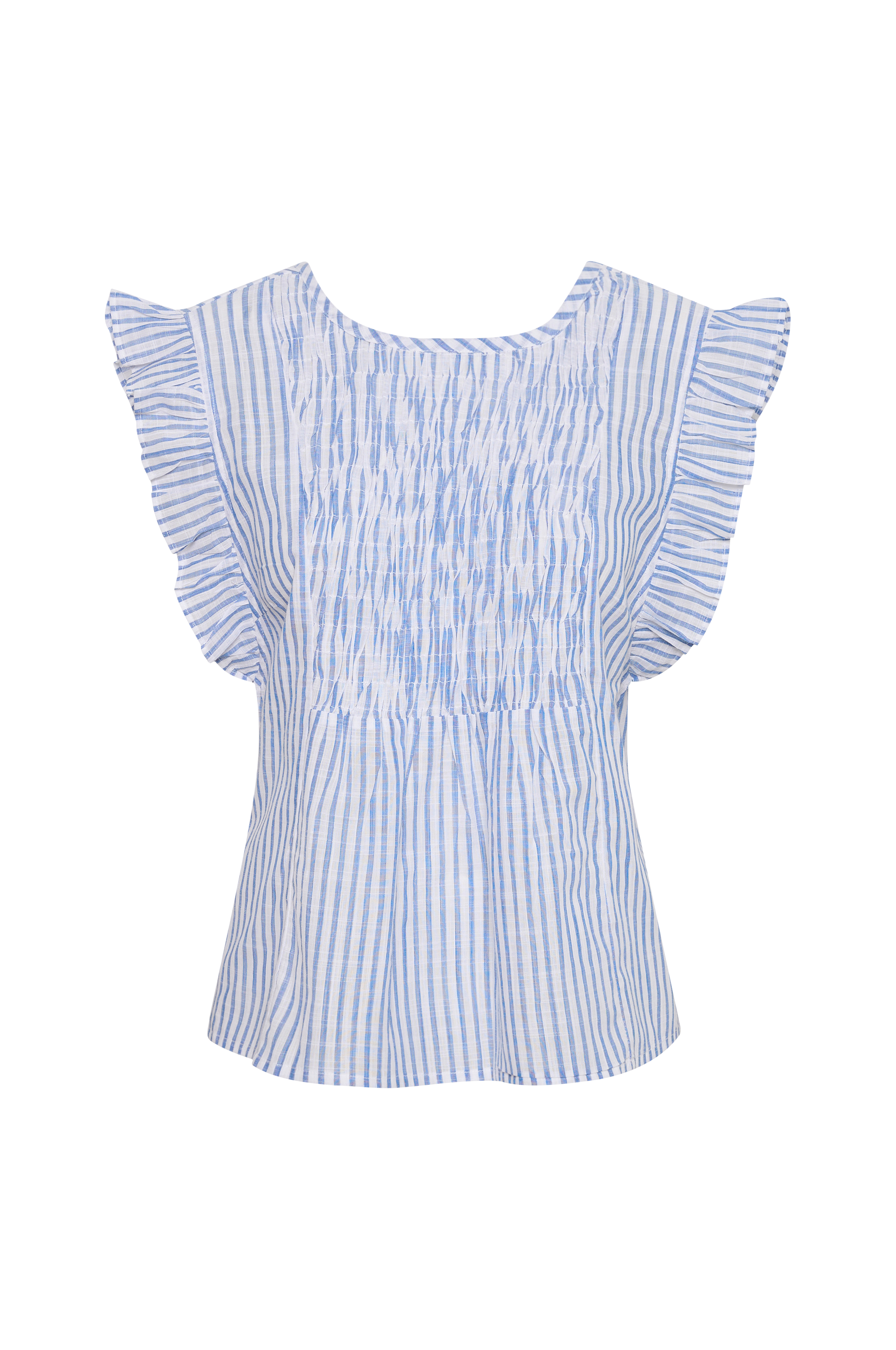 • V-hals snitt bakpå• Vaffelsøm oppover foran og oppover ryggen• Kort erme med volang rundt• Lett, vevd stoff