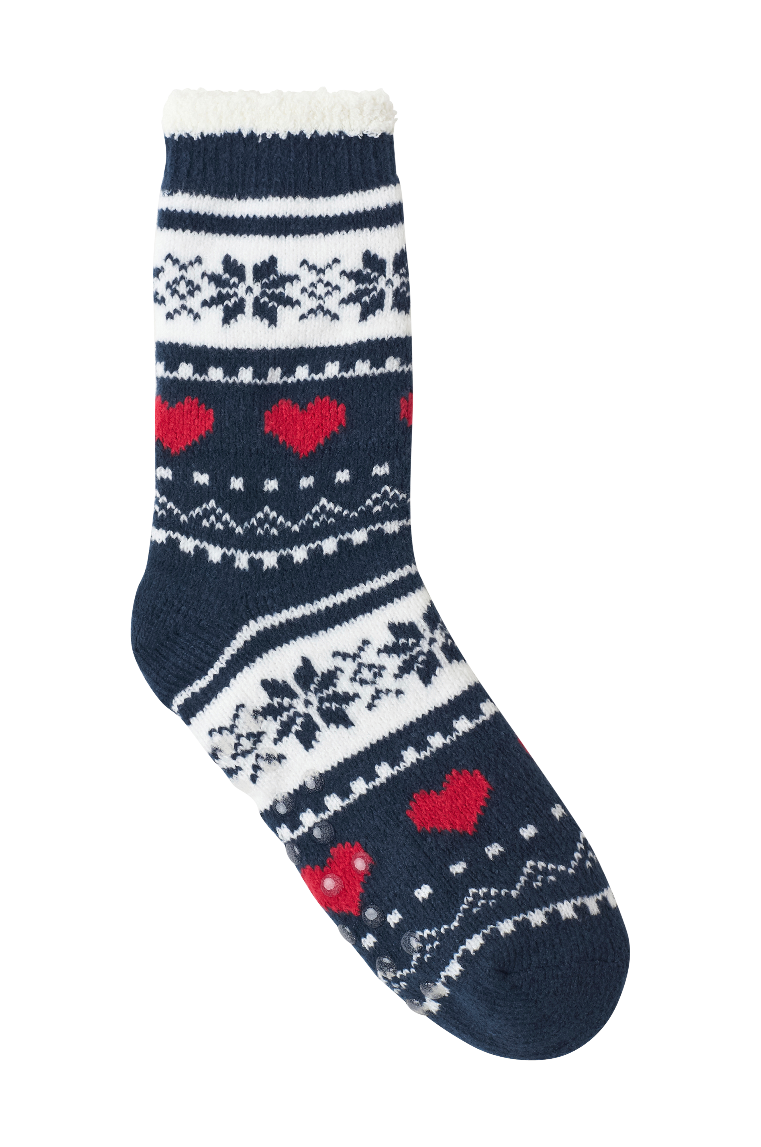 • Strikket, varme sokker med myk, lodden innside• Høye skaft med ribbestrikk på toppen• Sklibeskyttelse under foten