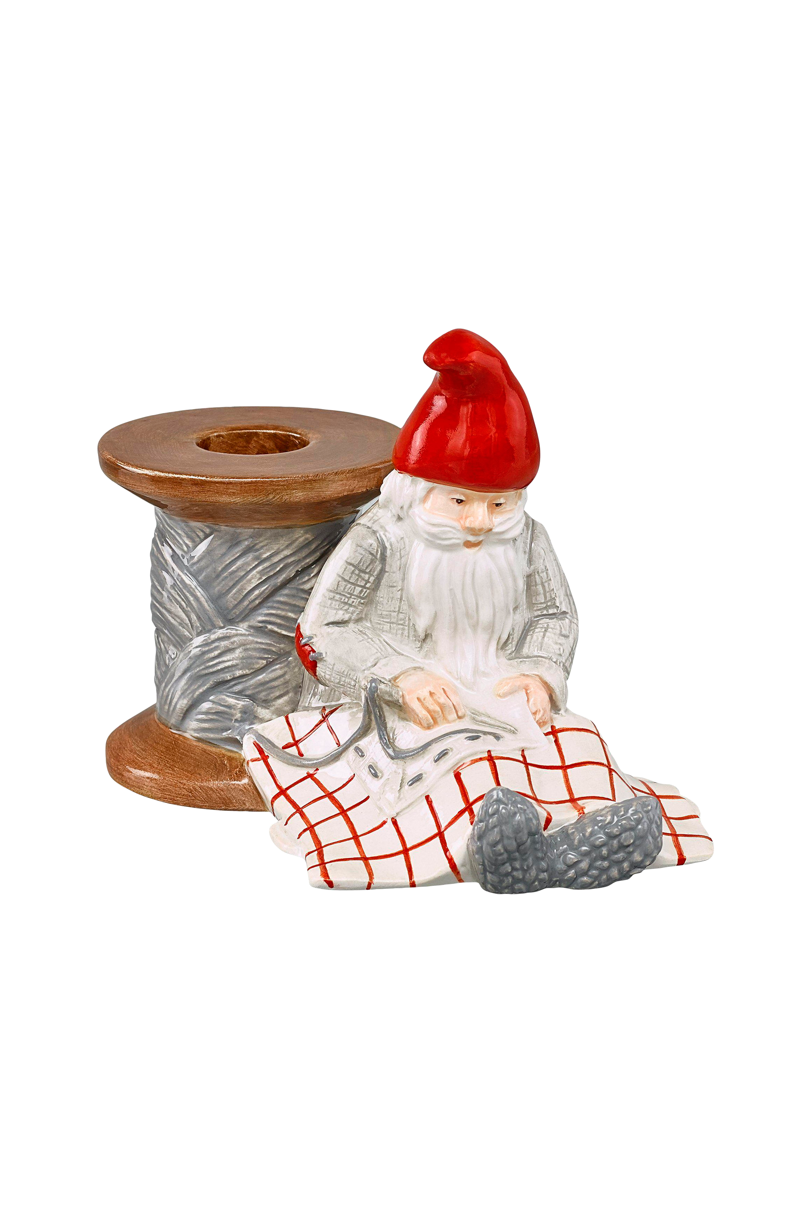 Håndmalt keramisk julenisse. Serien raggsokk med detaljer fra gammel svensk strikk. Design marita lord