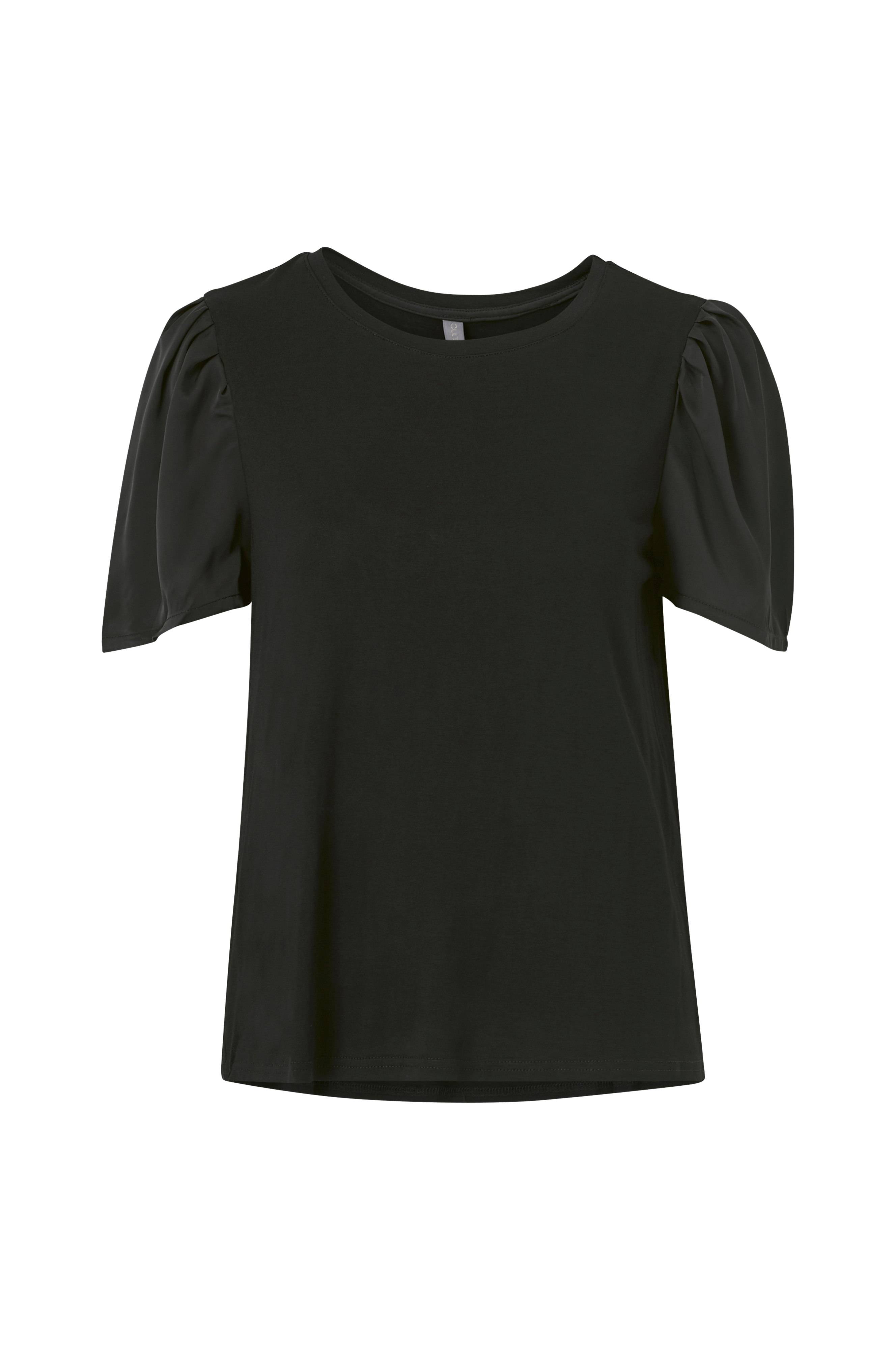 Topp cuGila Blouse SS fra Culture. Rett modell i smidig trikot med korte ermer i vevd sateng som har lagte legg ved skulderen. Rund hals med en liten, påsydd kant.