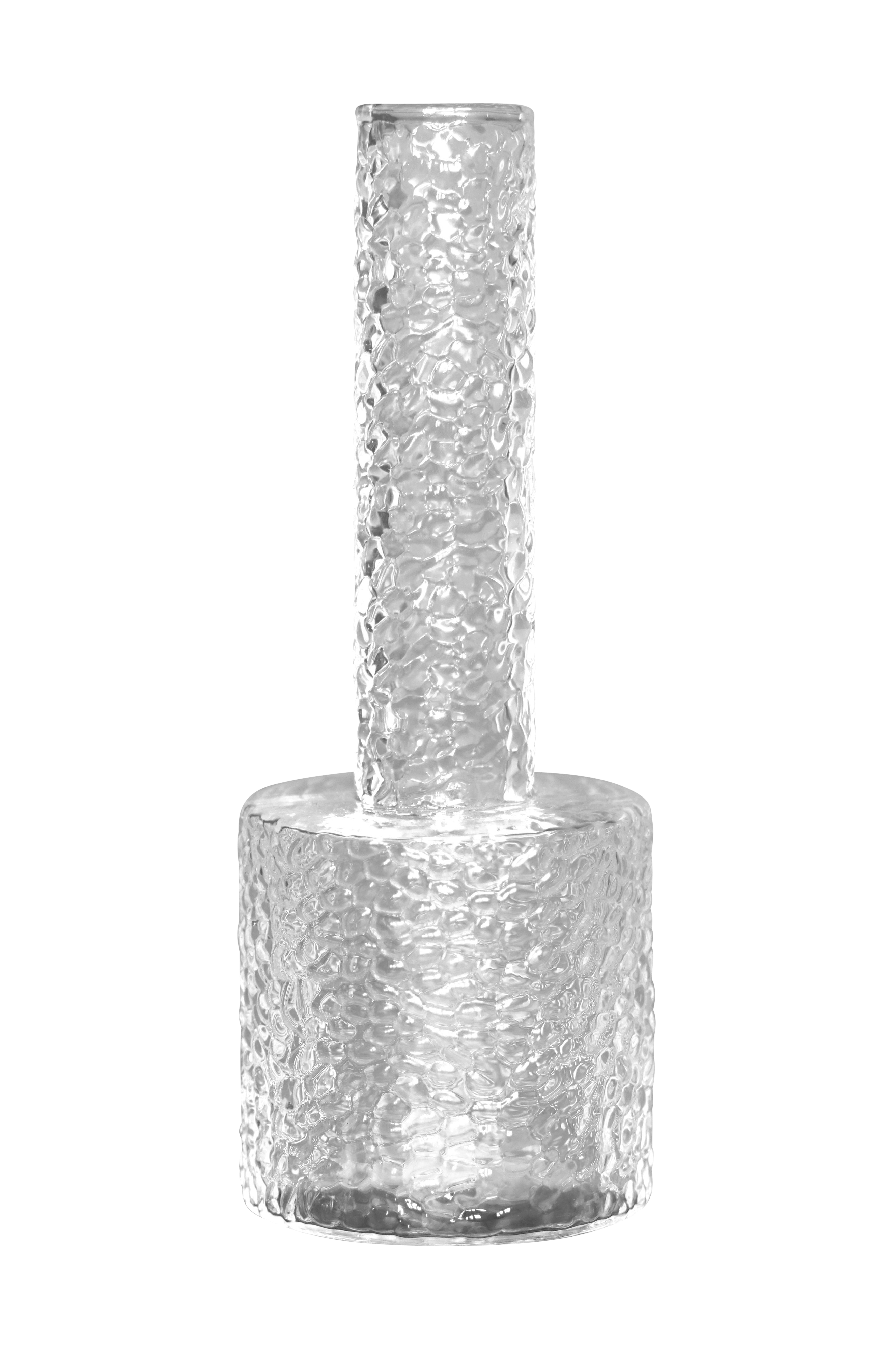 En serie i ruglete glass som er perfekt til alle små blomster. Diameter 6 cm, høyde 16 cm. Høyden på selve bunnen av vasen er 5 cm.