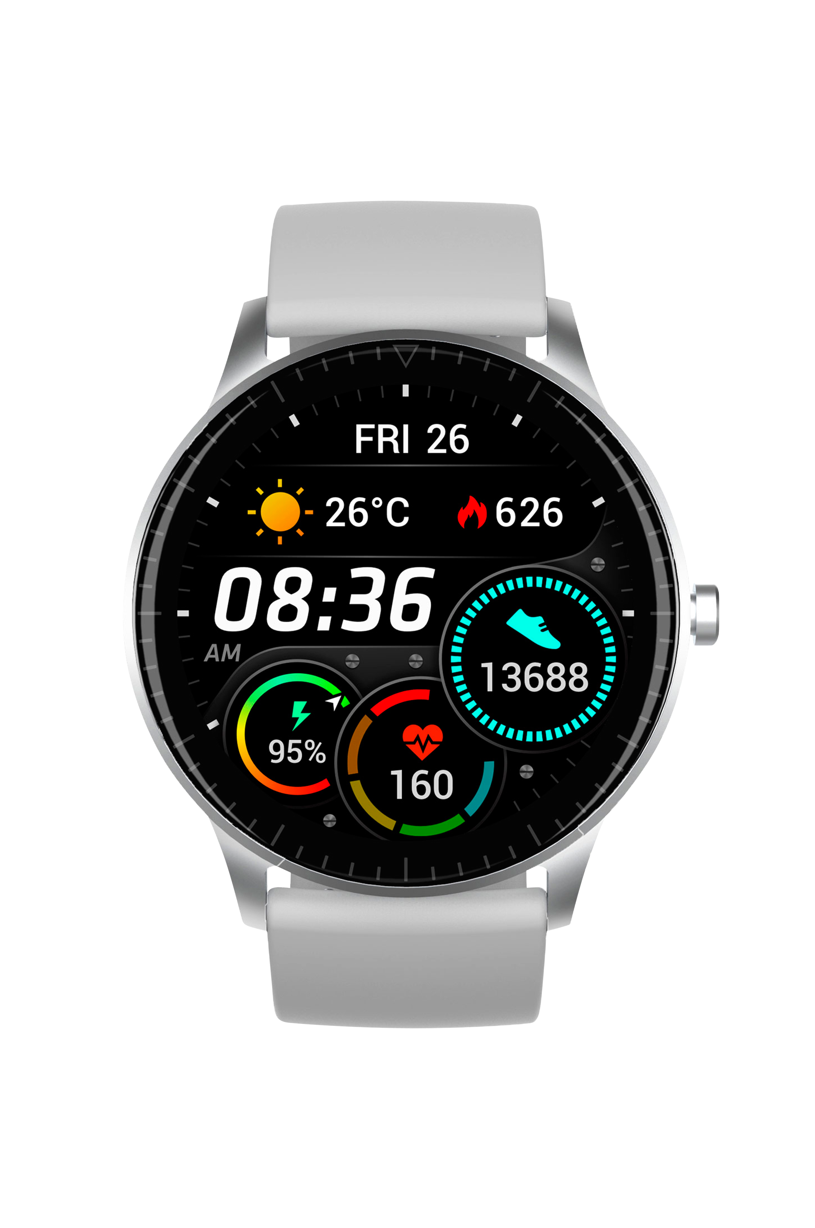 1,28" full pekeskjerm, pluss fysisk knapp på siden. Du kan spore sportsprestasjoner, overvåke daglige aktiviteter og søvn.