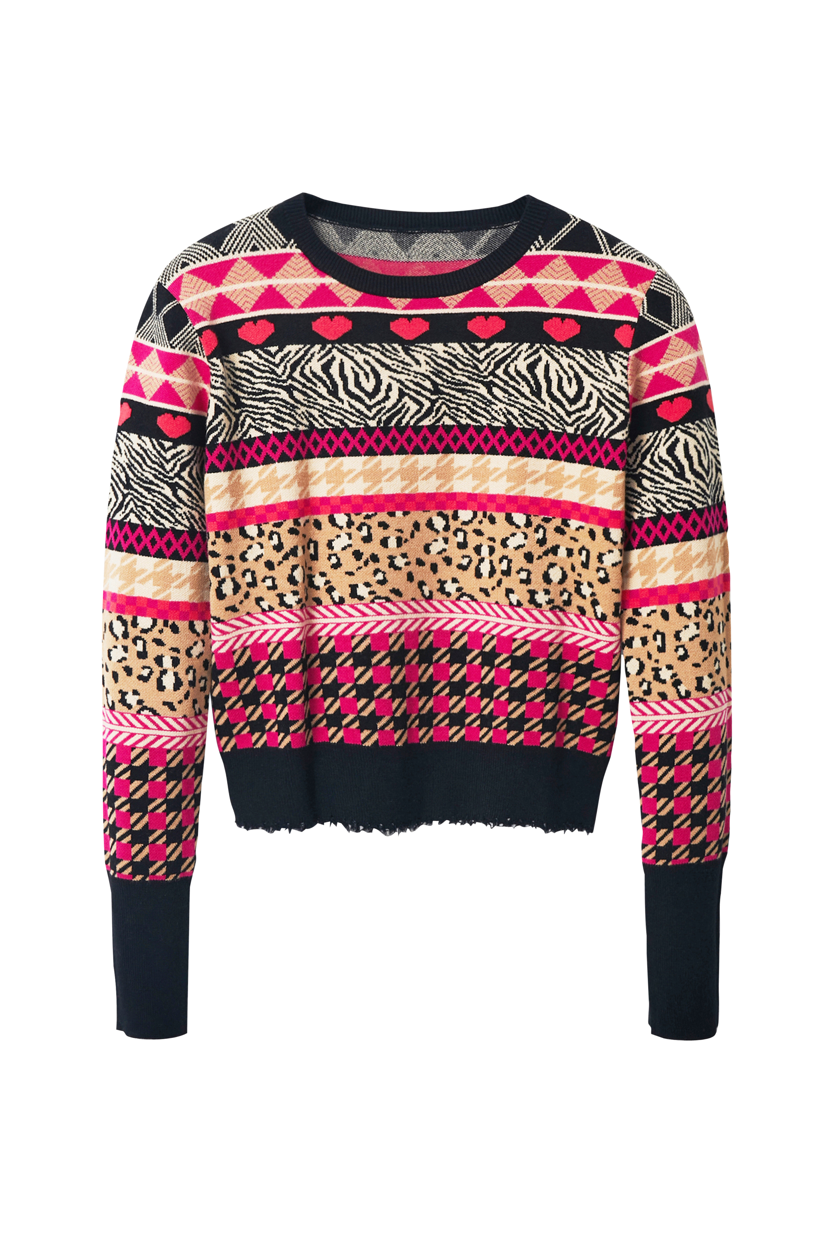 • Kort, mønsterstrikket genser• Frynset hem• Tynn ribbet mansjett i ermeslutten• Myk kvalitet