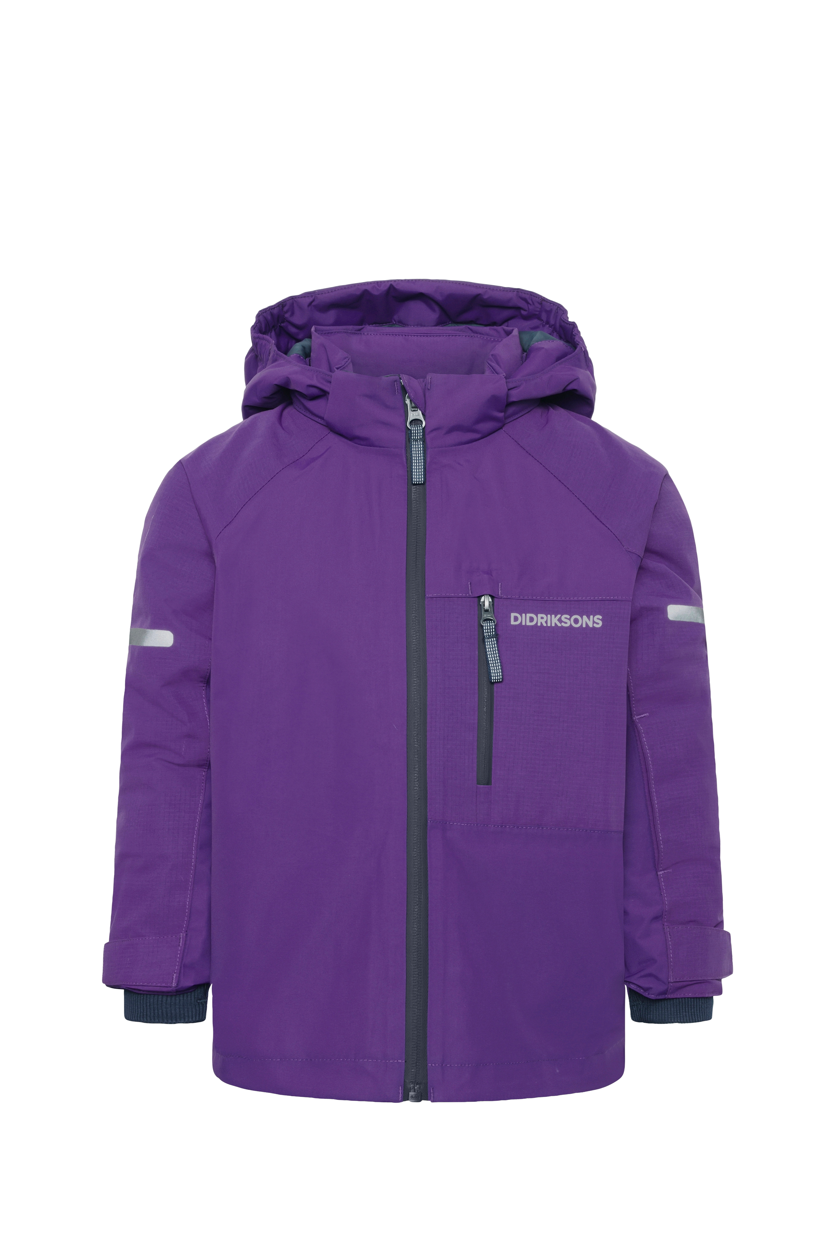 • Vanntett, lett polstret jakke • Avtagbar hette • Lukning med glidelås • Justerbare ermeender med borrelåsbånd • Ribbet mansjetter i ermeslutten med tommelhull • Lomme med glidelås • Refleksdetaljer • Plagget har "Extend Size"-funksjon, noe som betyr at ermene kan forlenges opp til én størrelse