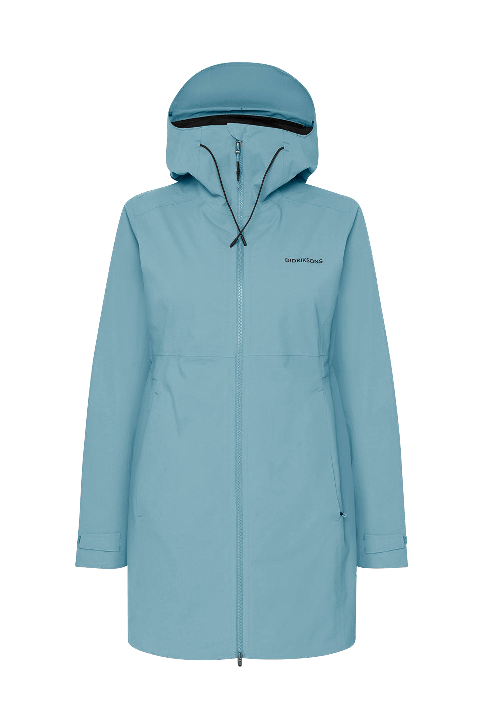 • Elegant parkasjakke for kvinner, egnet for hverdags- og utendørsbruk • Elegant silhuett med plissé i ryggen • Vann- og vindtett materiale med teipede sømmer • Toveis glidelås foran • Justerbar hette med snøring og formet kant • Snøring i midjen • Justerbare ermeender • Praktiske sidelommer med glidelås og innerlomme med glidelås • Refleksdetaljer og logo for bedre synlighet • Vannsøyle: 10 000 mm • Pusteevne: 8 000 g/m²/24 timer • Lengde: 91 cm i størrelse 36.