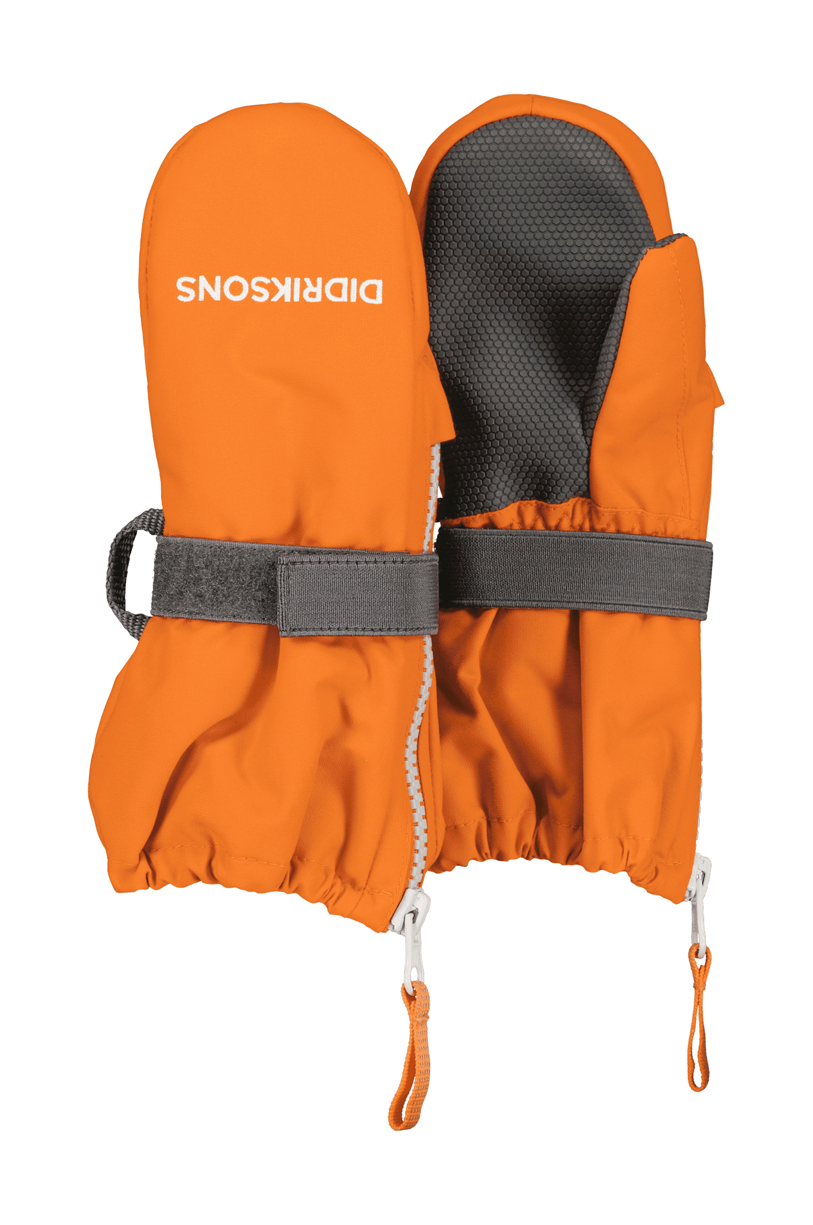 • Polstrede, vanntette tommelvotter • Forseglede sømmer • Myk, varm teddy-fôring • Lang glidelås i ene siden • Justerbar passform med borrelås • Forsterkning i håndflaten • Sikkerhetsstropp med klips til å feste på yttertøyet