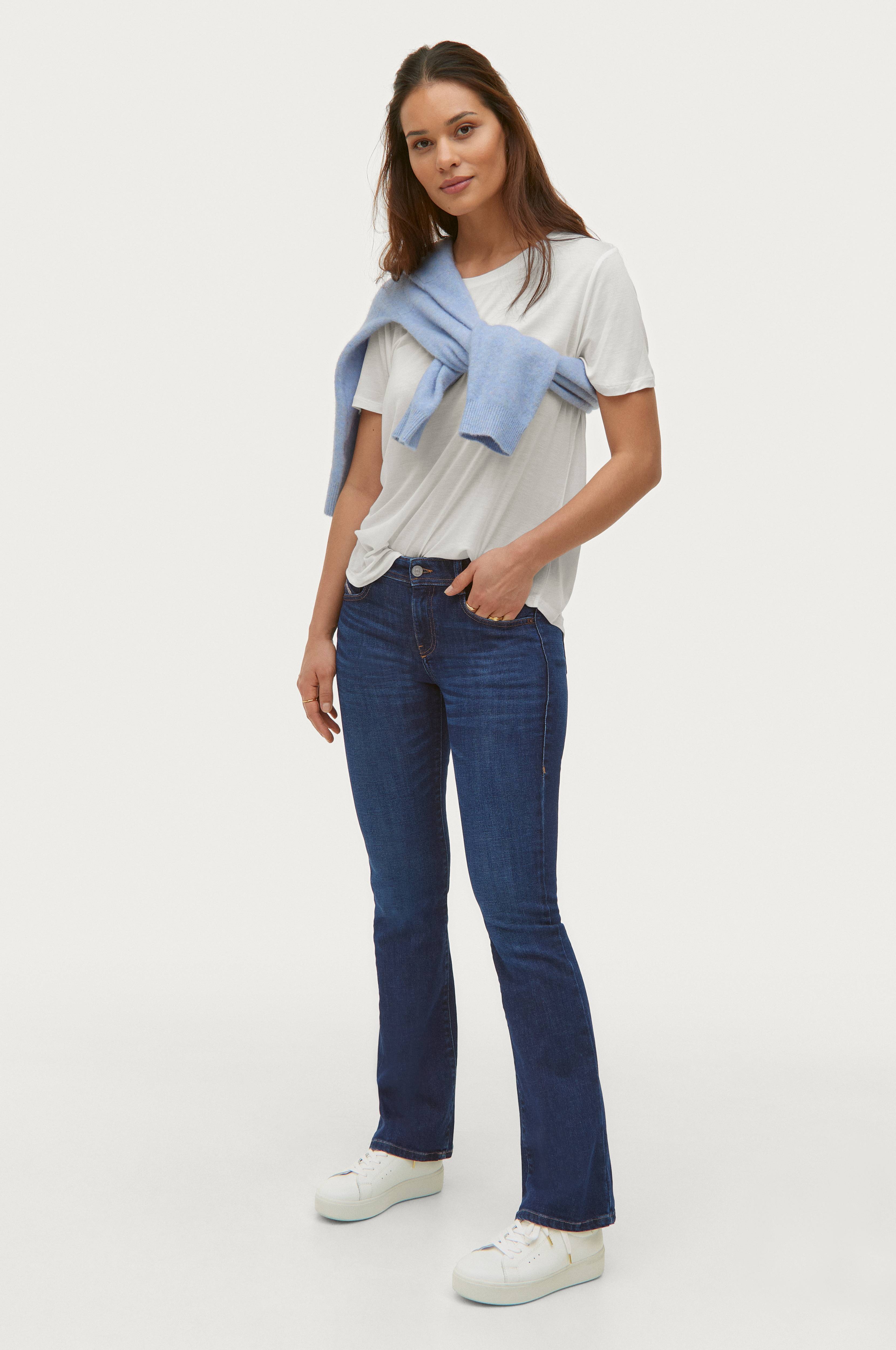 • Stretch-denim• Femlommemodell• Lynlås• Lav midje• Smal passform• Boot-cut-underdel med utsvingte benender