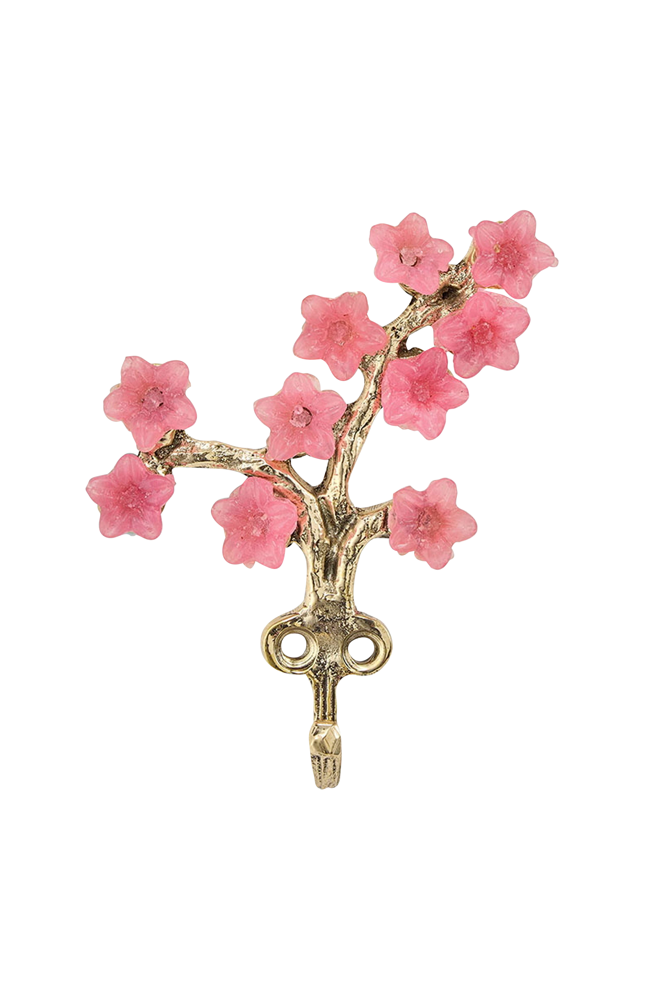 Gi hjemmet ditt et snev av farge og eleganse med Elodie Flower Hook. Denne unike veggkroken i messing er dekorert med delikate rosa blomster og har en myk gylden glans. Enten du bruker den som dekorativ krok i gangen, soverommet eller barnerommet, lyser den øyeblikkelig opp enhver vegg. Elodie Flower Hook måler 11,5 x 8 x 2 cm og er stor nok til å skille seg ut, men liten nok til å kombineres med andre kroker i et lekent arrangement. Den leveres vakkert presentert på et gavekort, noe som gjør den til en perfekt liten gaveide. Kombinasjonen av gullfarget messing og myke rosa blomster gir denne kroken et romantisk og unikt utseende. Hvert stykke er håndlaget og har en subtil vintage-sjarm som passer både til moderne og klassiske interiører. Bruk Elodie Flower Hook til å henge skjerf, smykker, vesker eller en lett jakke. På soverommet er den ideell for dine favoritttilbehør eller en dekorativ oppheng. På barnerommet gir den en munter aksent på veggen. Produktdetaljer: