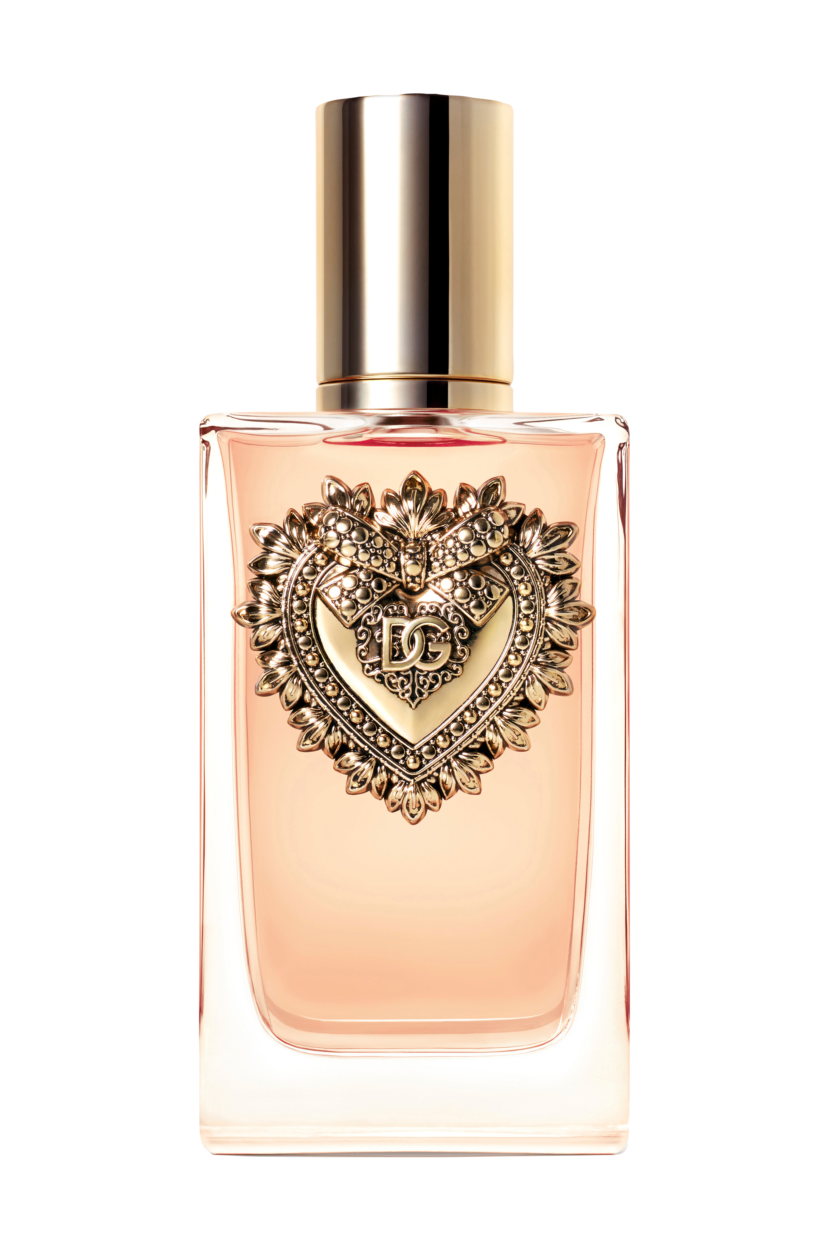 Devotion Eau de Parfum-flasken prydes av Sacred Heart-emblemet med sine distinkte mønstre. Et universelt symbol for kjærlighet i alle dens former og nyanser.
