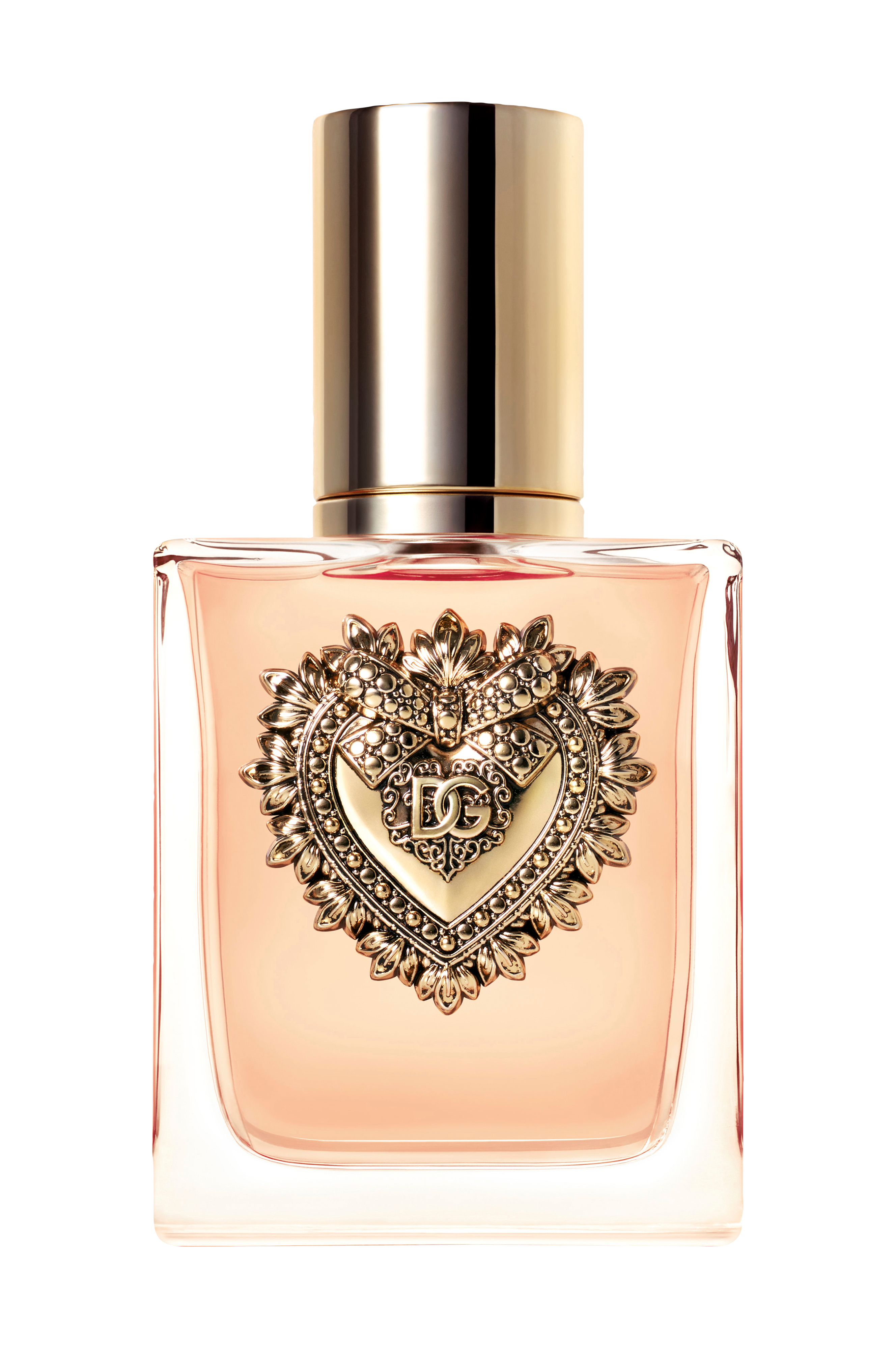 Devotion Eau de Parfum-flasken prydes av Sacred Heart-emblemet med sine distinkte mønstre. Et universelt symbol for kjærlighet i alle dens former og nyanser.