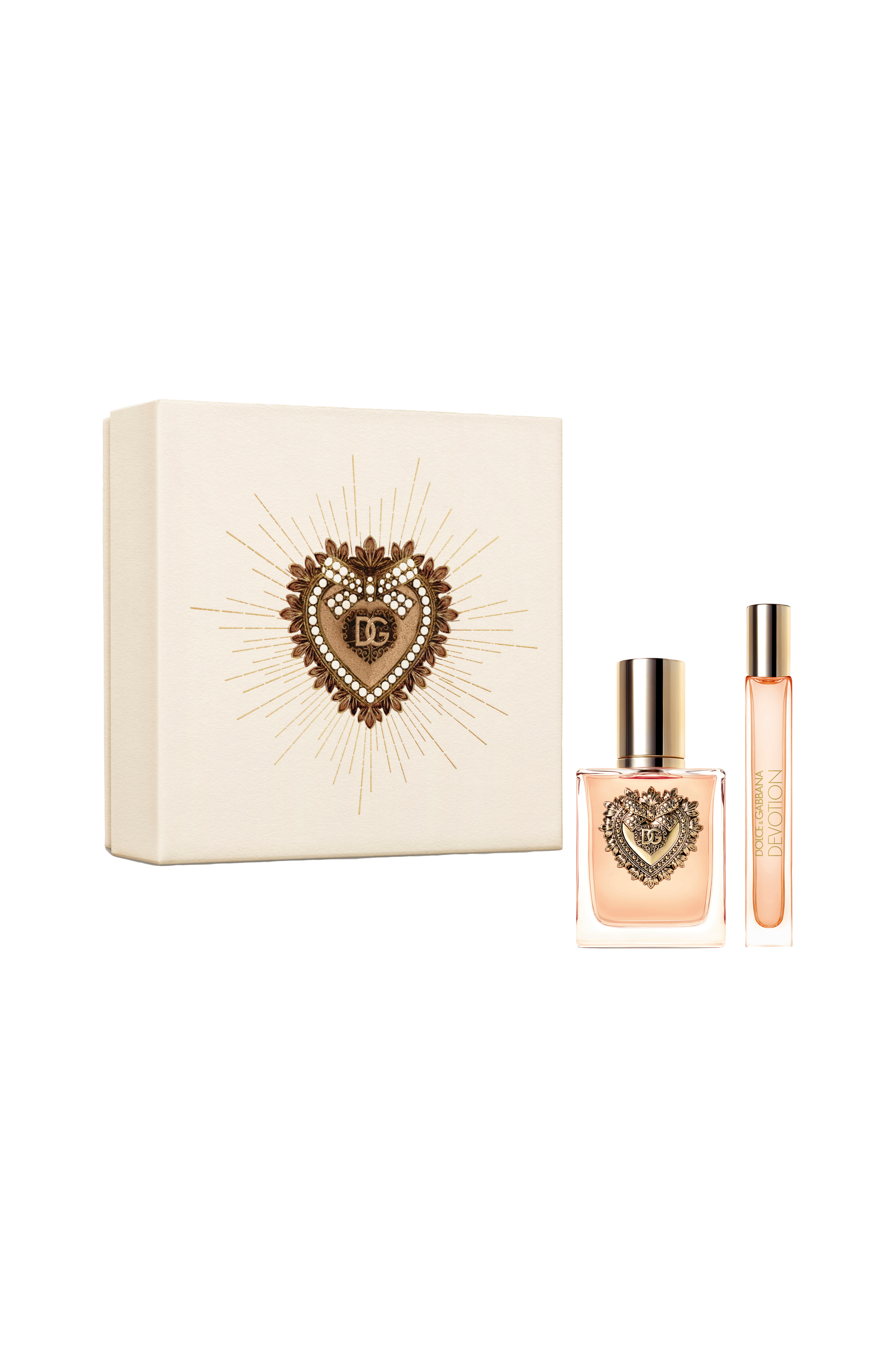 Devotion Eau de Parfum-flasken prydes av Sacred Heart-emblemet med sine distinkte mønstre. Et universelt symbol for kjærlighet i alle dens former og nyanser.