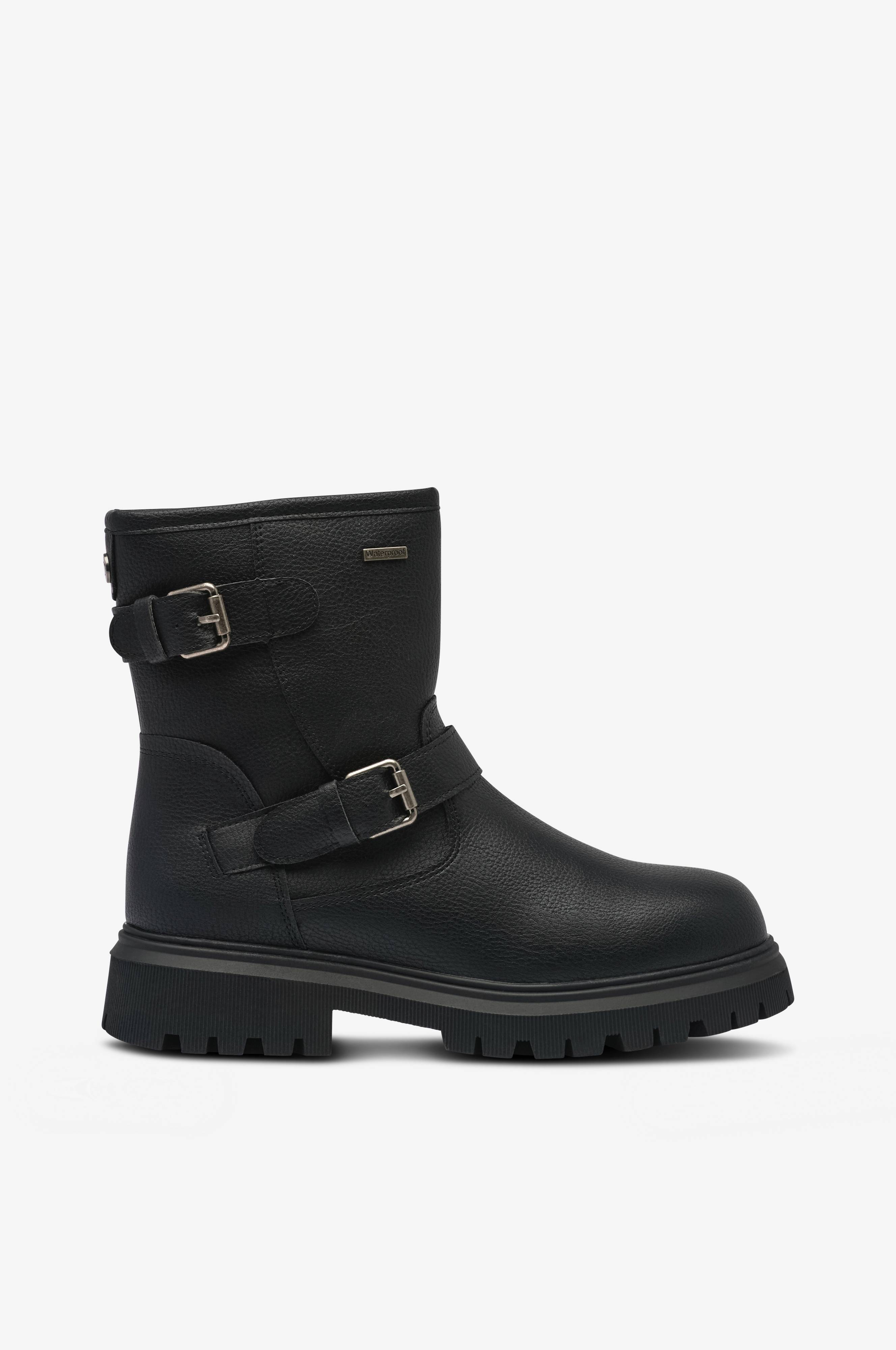 • Vanntette boots i skinnimitasjon med dekorative stropper på skaftet• Glidelås på innsiden av skaftet• Tekstilfôr• Grovmønstret yttersåle i gummi• Skafthøyde: 16 cm i størrelse 37