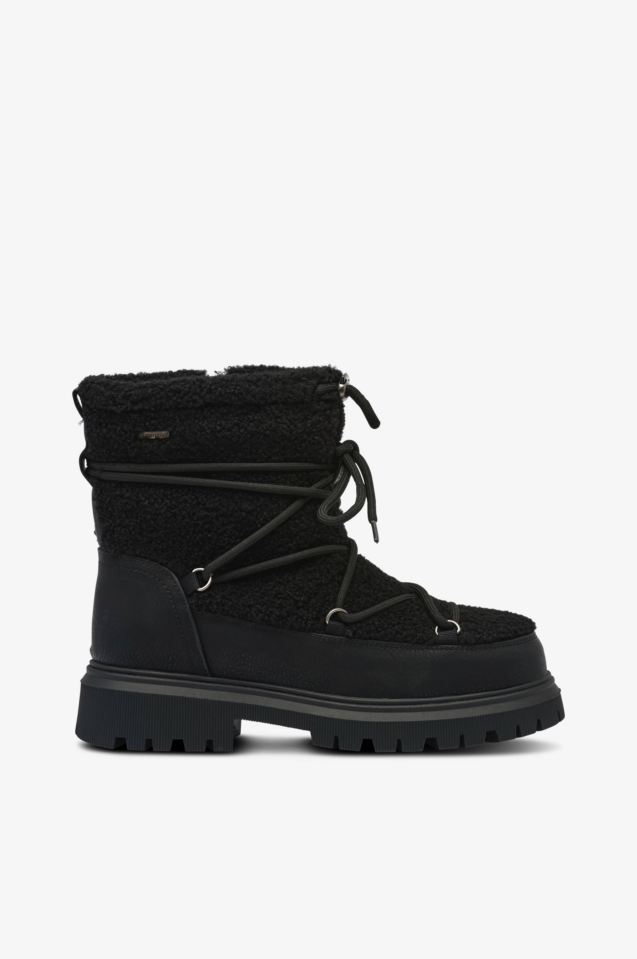 • Vanntette boots i tekstil og skinnimitasjon• Snøring• Snøring• Glidelås på en side• Varmende tekstilfôr• Grovmønstret yttersåle i gummi• Skafthøyde: 16 cm i størrelse 37