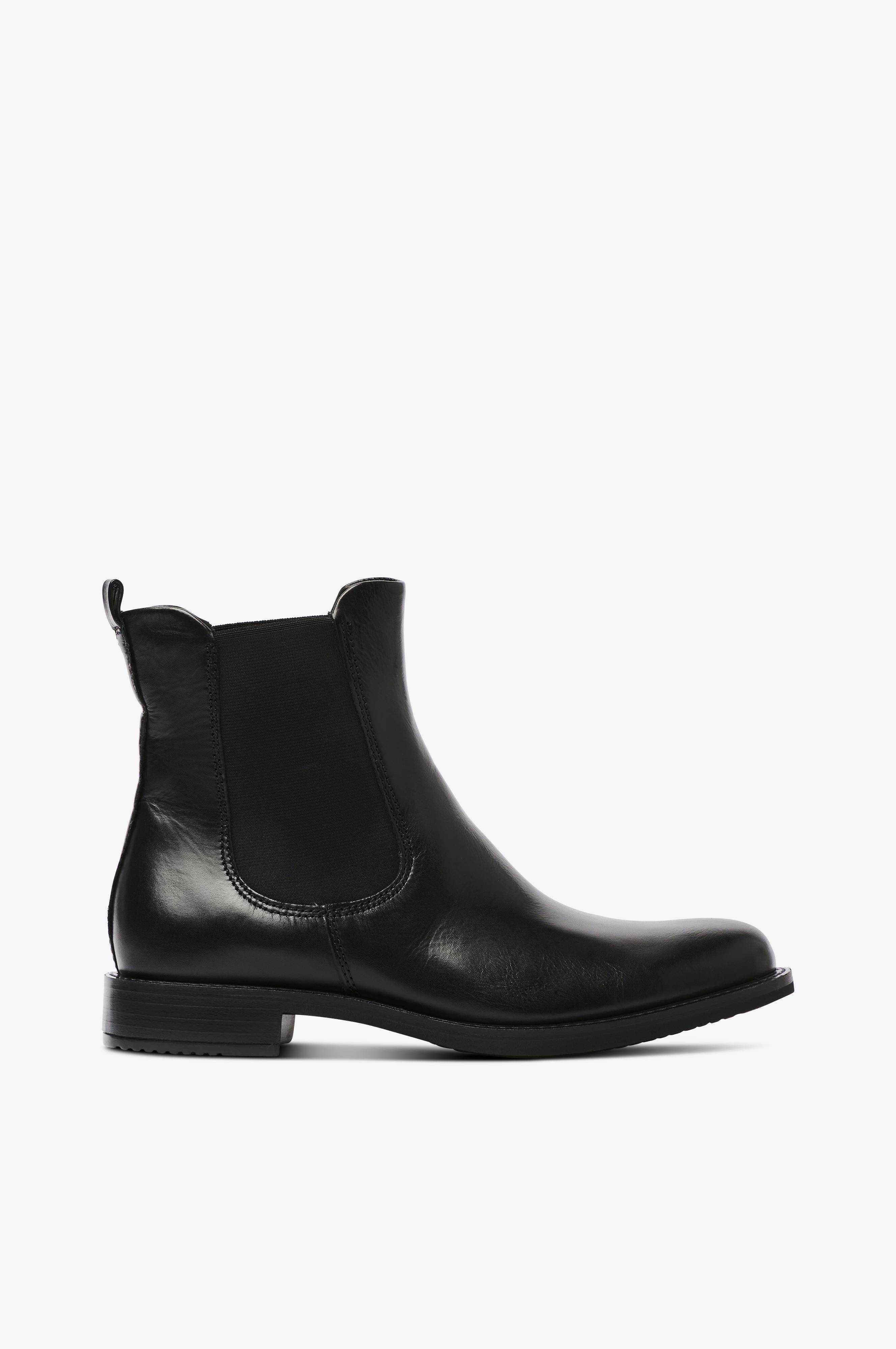 Chelseaboots i mykt skinn med strikkinnfellinger på begge sider av skaftet. Uttagbar, skinnkledd innersåle. Sålen i direktestøpt PU er slitesterk og fleksibel. Hælhøyde ca. 2,5 cm. Skafthøyde ca. 14,5 cm i str 37.