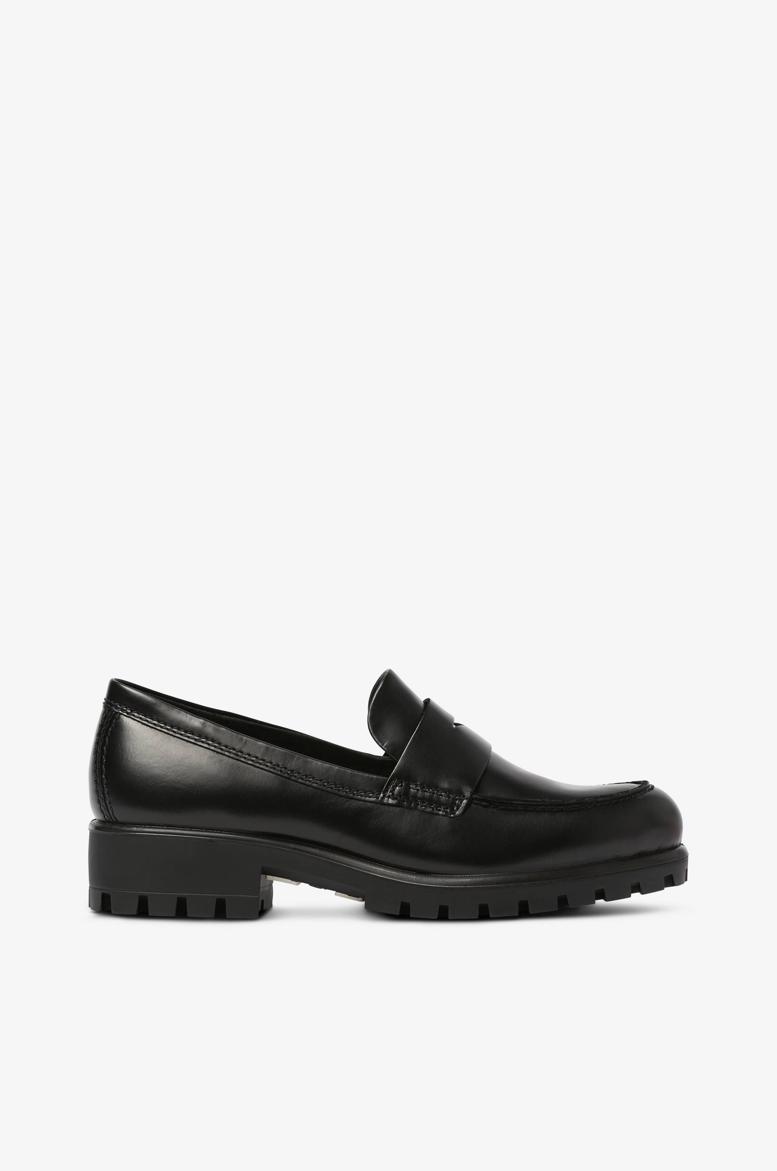 Loafers i skinn med en noe høy, grovmønstret såle og hæl. Produsert i mykt, fullnarvet skinn fra Eccos egne garverier. Polert mellomsåle med kontrastfarget parti på innsiden. Mykt fôr i skinn og tekstil som sammen gir en luksuriøs følelse og godt fotklima. Ecco Fluidform i sålen gir deilig demping. Hælhøyde ca. 3,5 cm.