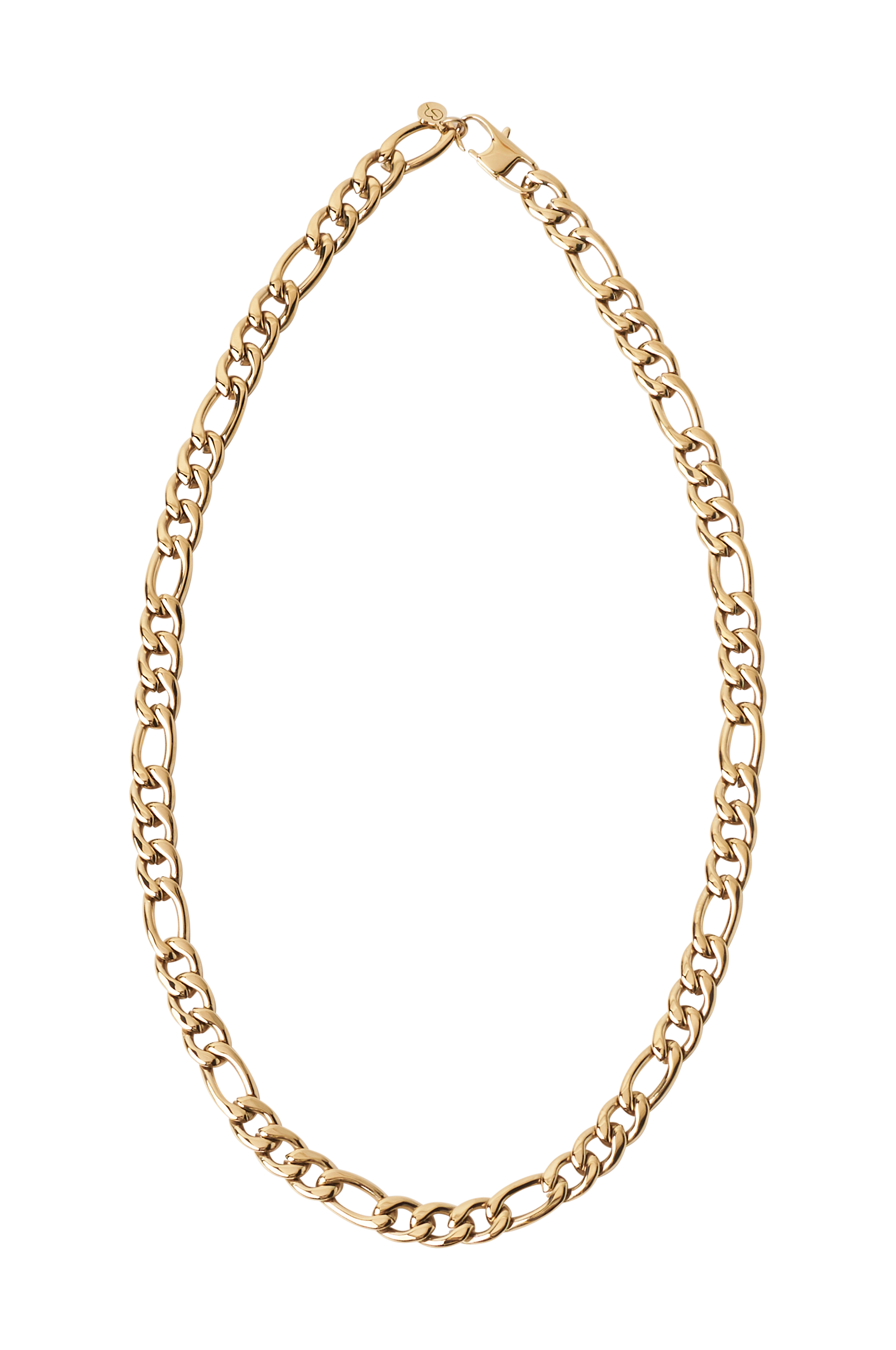 Halskjede med grov kjedelenke i rustfritt stål med blank 14 k gullplettering. Figaro er perfekt å bruke sammen med andre halskjeder, men er også fint alene.Lengde 45 cm, bredde 7 mm.