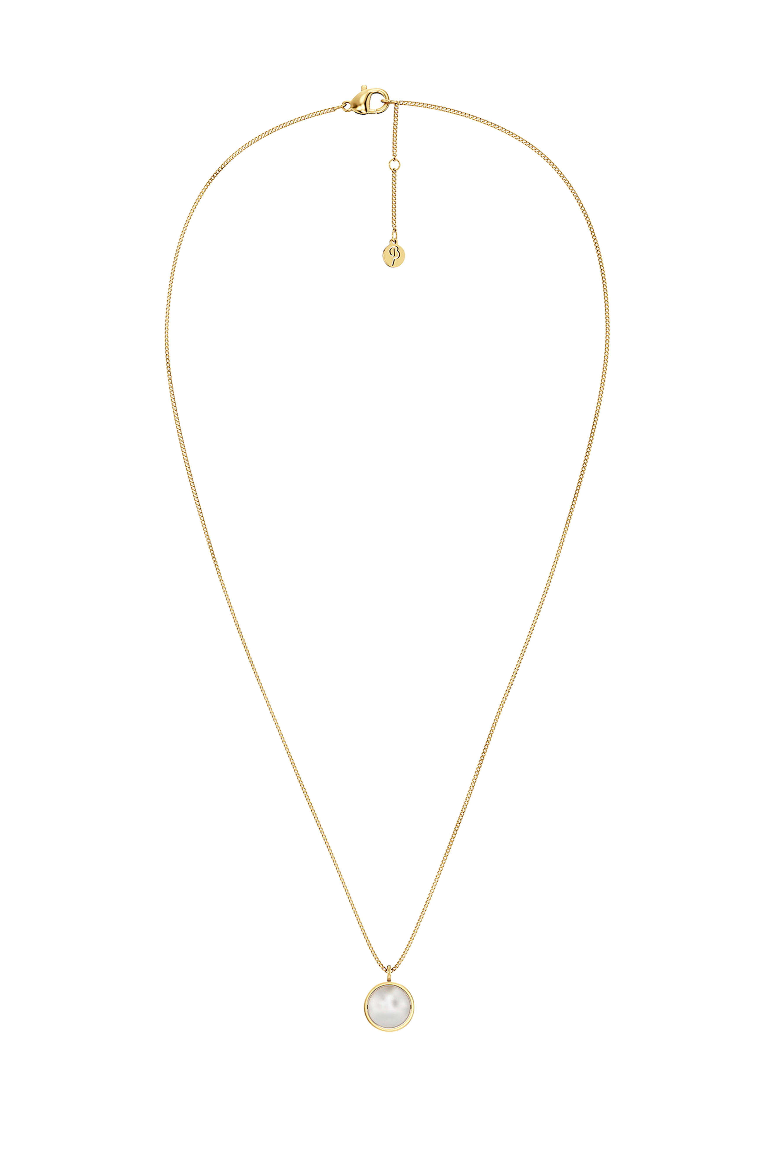 • 14K gullbelagtt halskjede i rustfritt stål• Dekorativ, hengte perle• Justerbar lengde• Nikkelbestandig• Vannbestandig