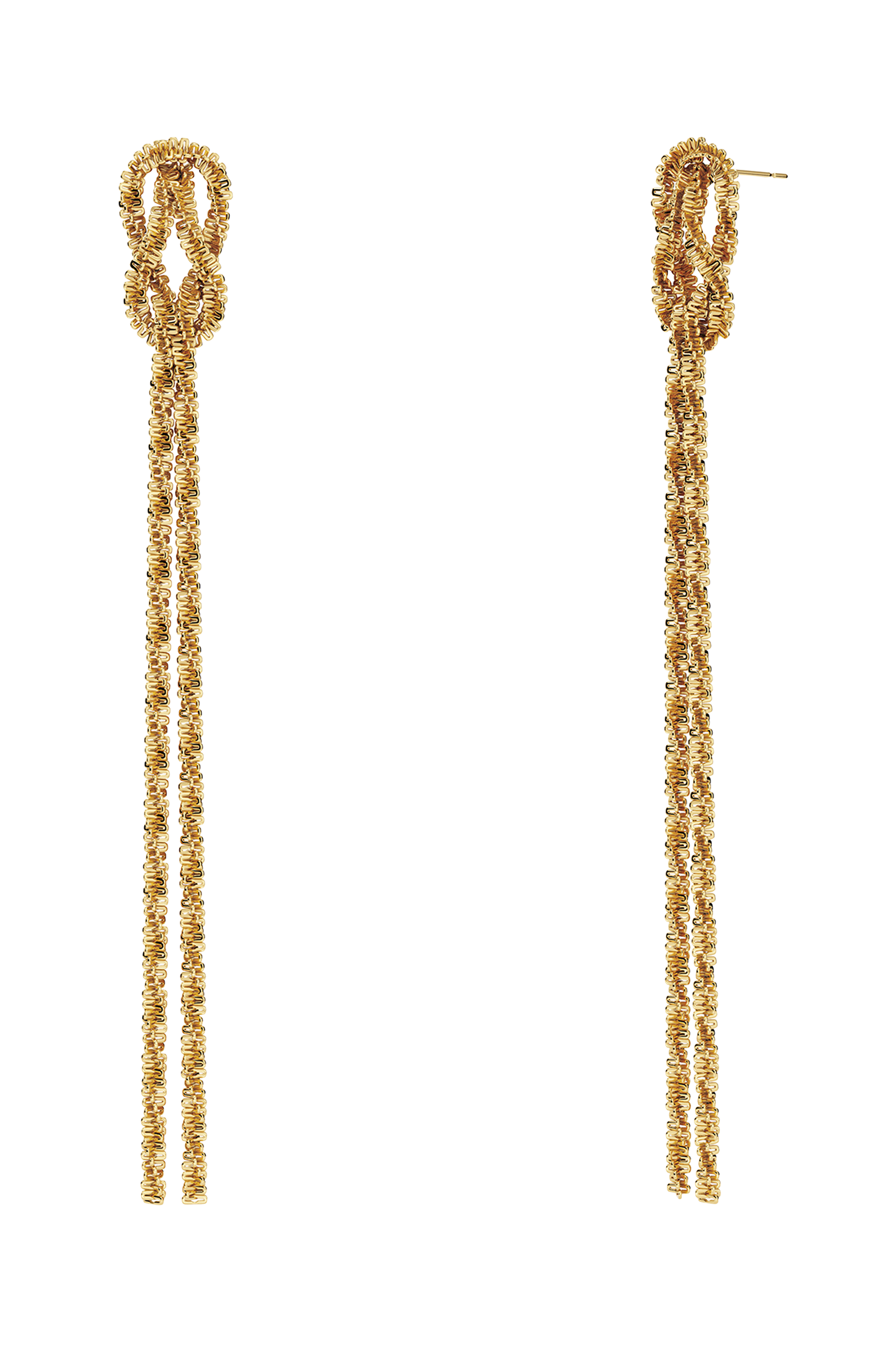 • 14K gullbelagt stiftmodell i rustfritt stål med kjeder og dekorativ knute• Nikkelsikre• Lengde 10 cmKnute 9x15 mm