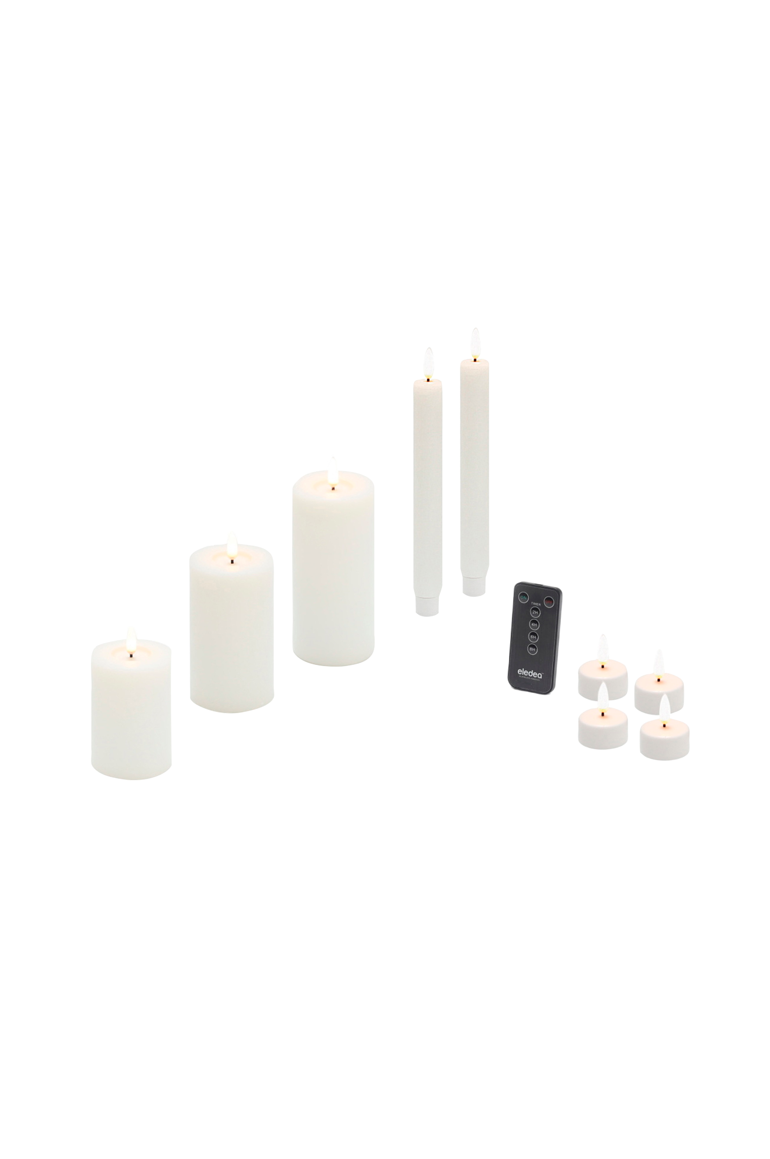 Materiale: kronelys og kubbelys: virgin parafinvoks / telys og fjernkontroll: pet plast