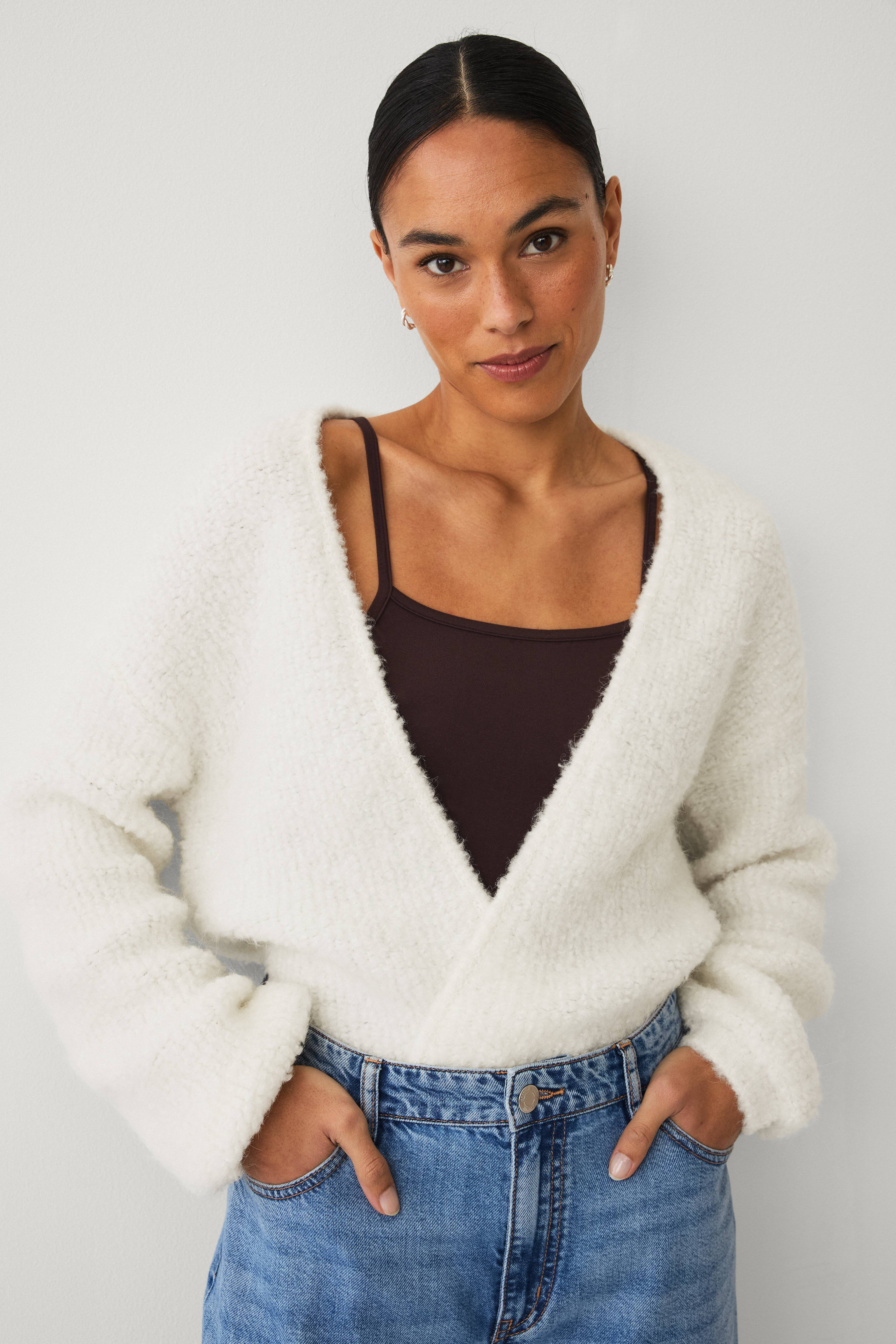 • Grovstrikket kardigan i ullblanding• Åpen modell uten knappelukking• Ribbestrikk i ermeslutten og i nedre kant