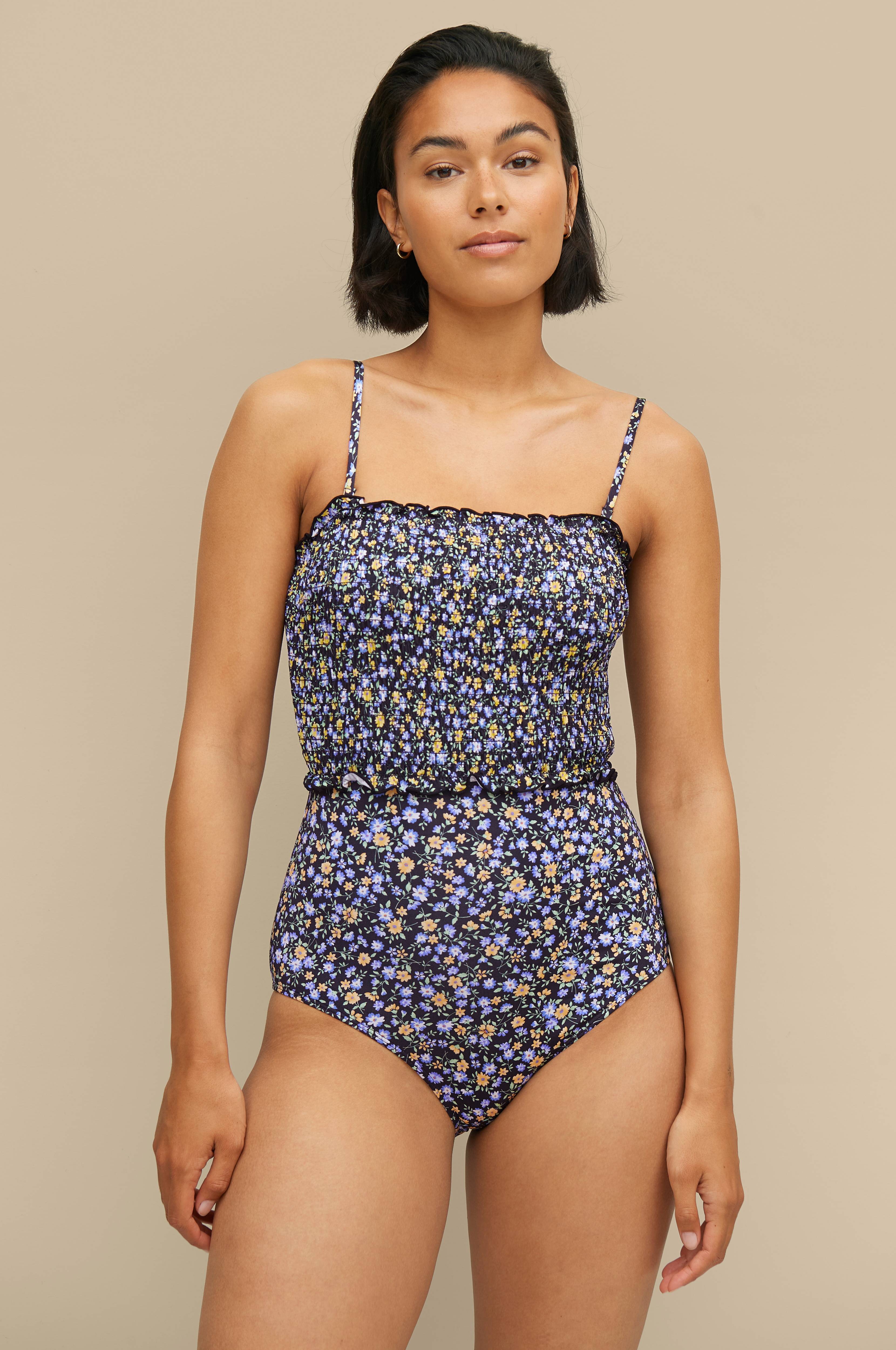 • Elastisk vaffelsøm på toppen • Fjernbar polstring • Avtagbare skulderstropper • Innvendig silikonkant på toppen • Fôret • Produktet inneholder gjenvunnet materiale som er brukt for å redusere mengden avfall, samtidig som det ikke er brukt nye ressurser.