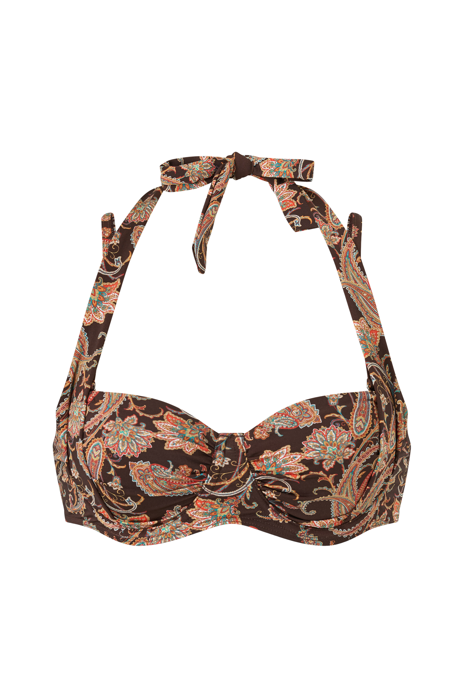 • Ikke polstret bikini-BH med brakett• Selvknytende halterneck• Justerbare, avtagbare skulderstropper• Metallspenne i ryggen• Innvendig silikonkant på toppen av koppen