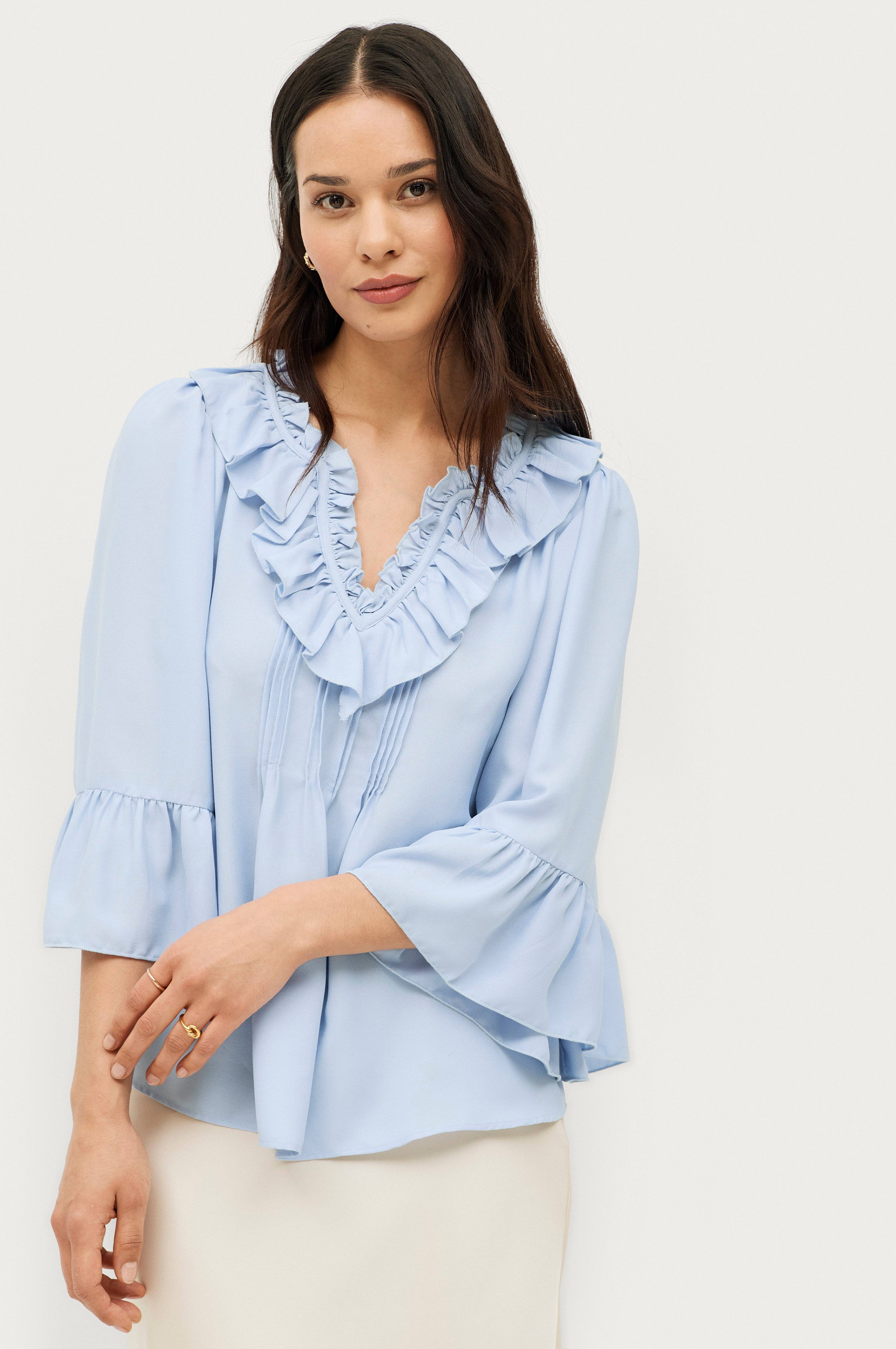 Modellen er 181 cm høy og har på seg størrelse 34/36