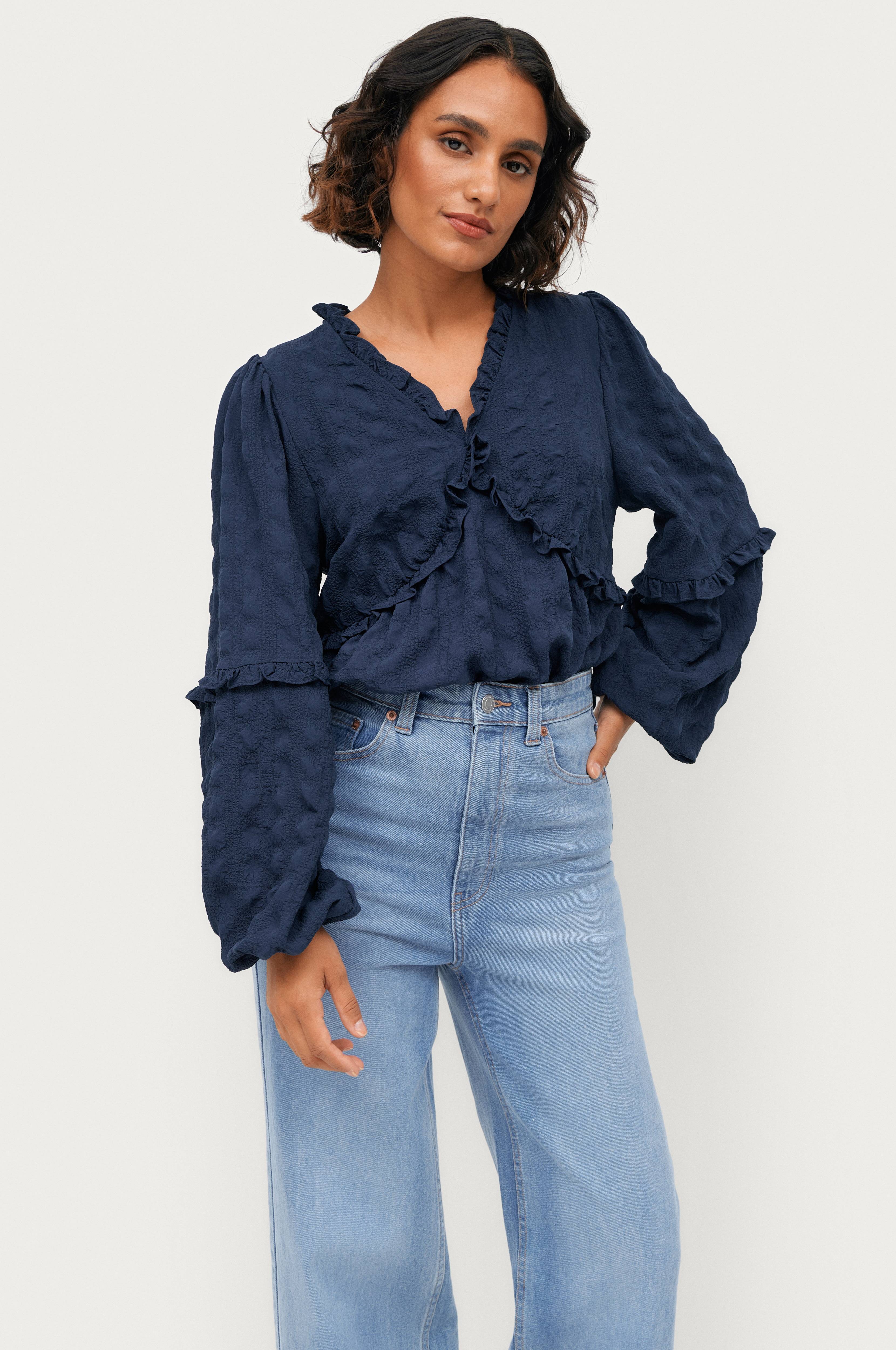 • Modell med en uformell passform • V-formet hals med volang • Liten volang rundt • Bredt ballongerme med elastisk mansjett • Lengde: 64 cm i størrelse 34/36