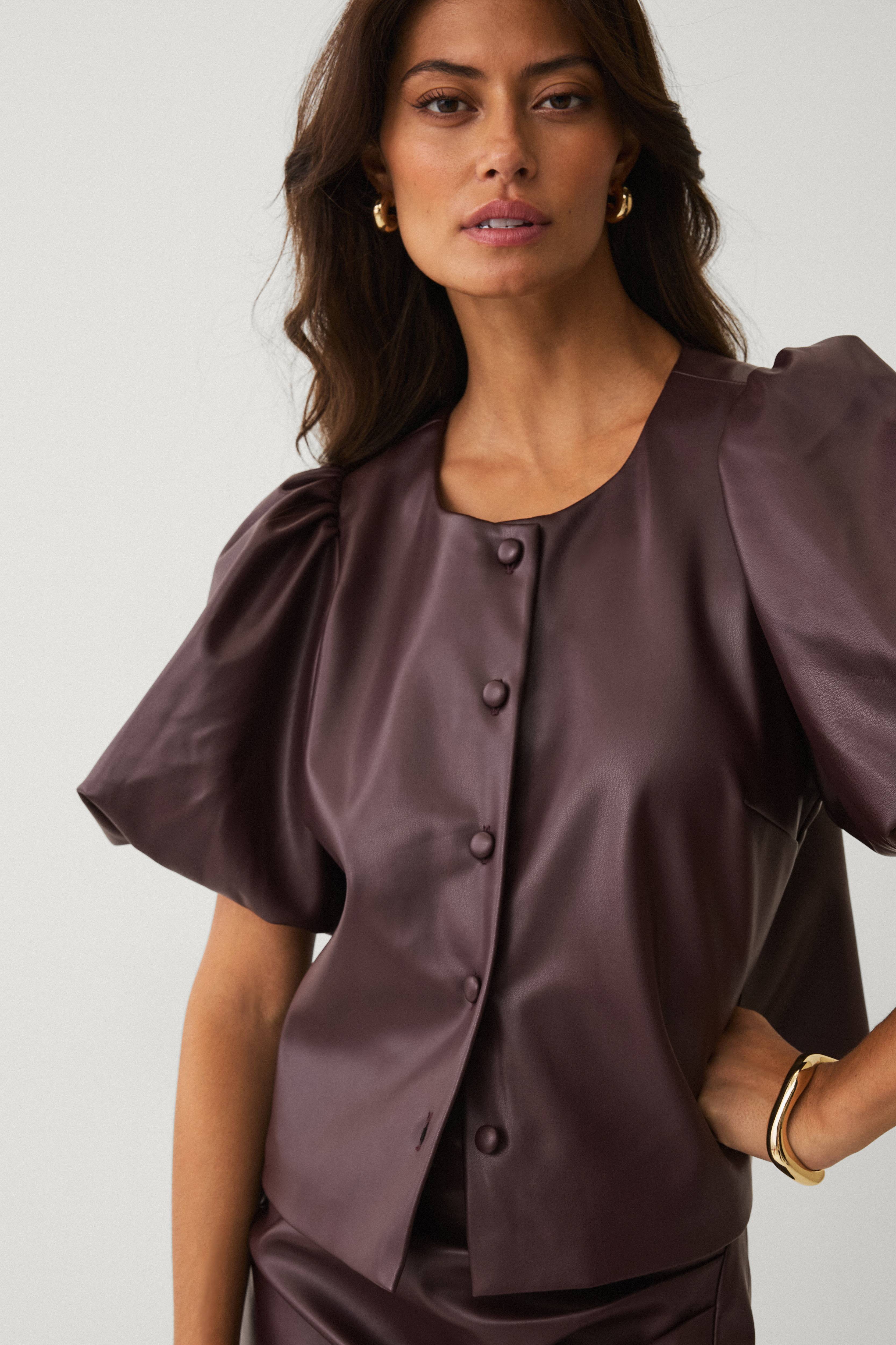 Ellos Collection Bluse i skinnimitasjon med puffermer