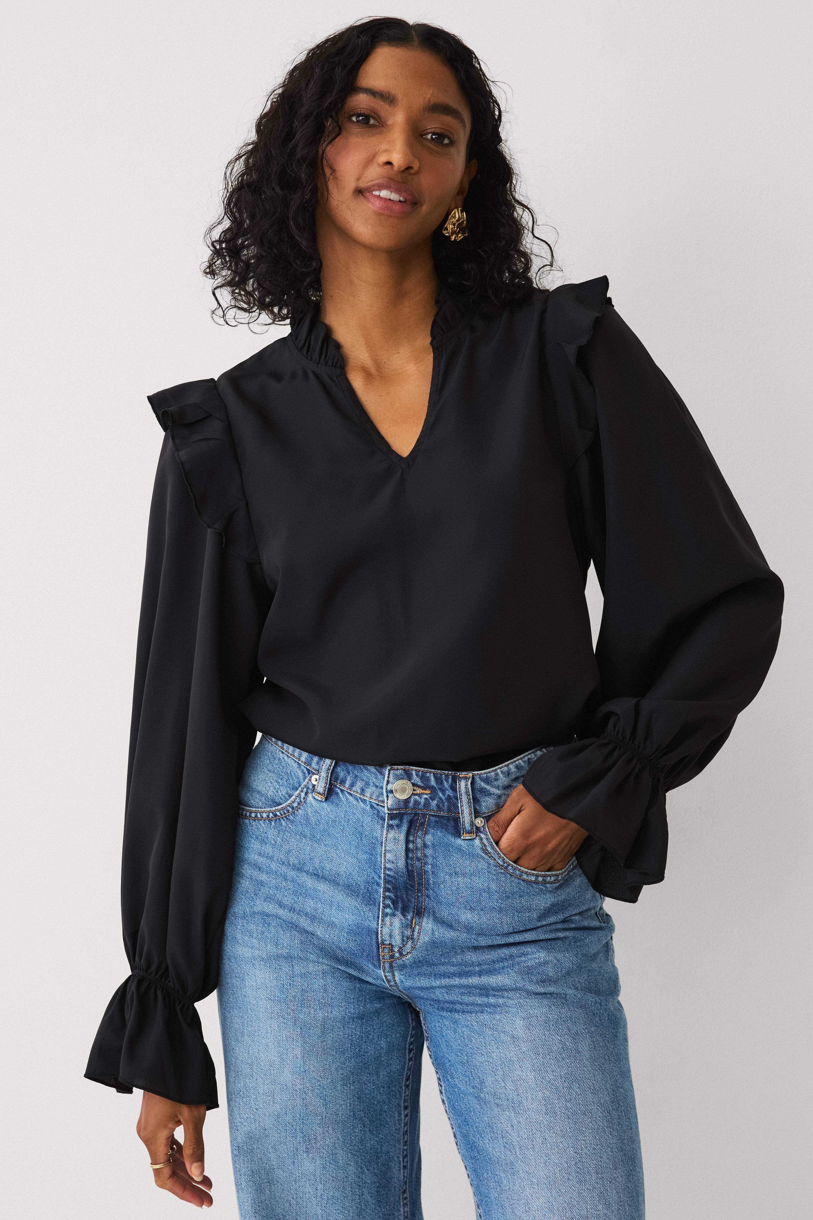 • Bluse med v-formet hals