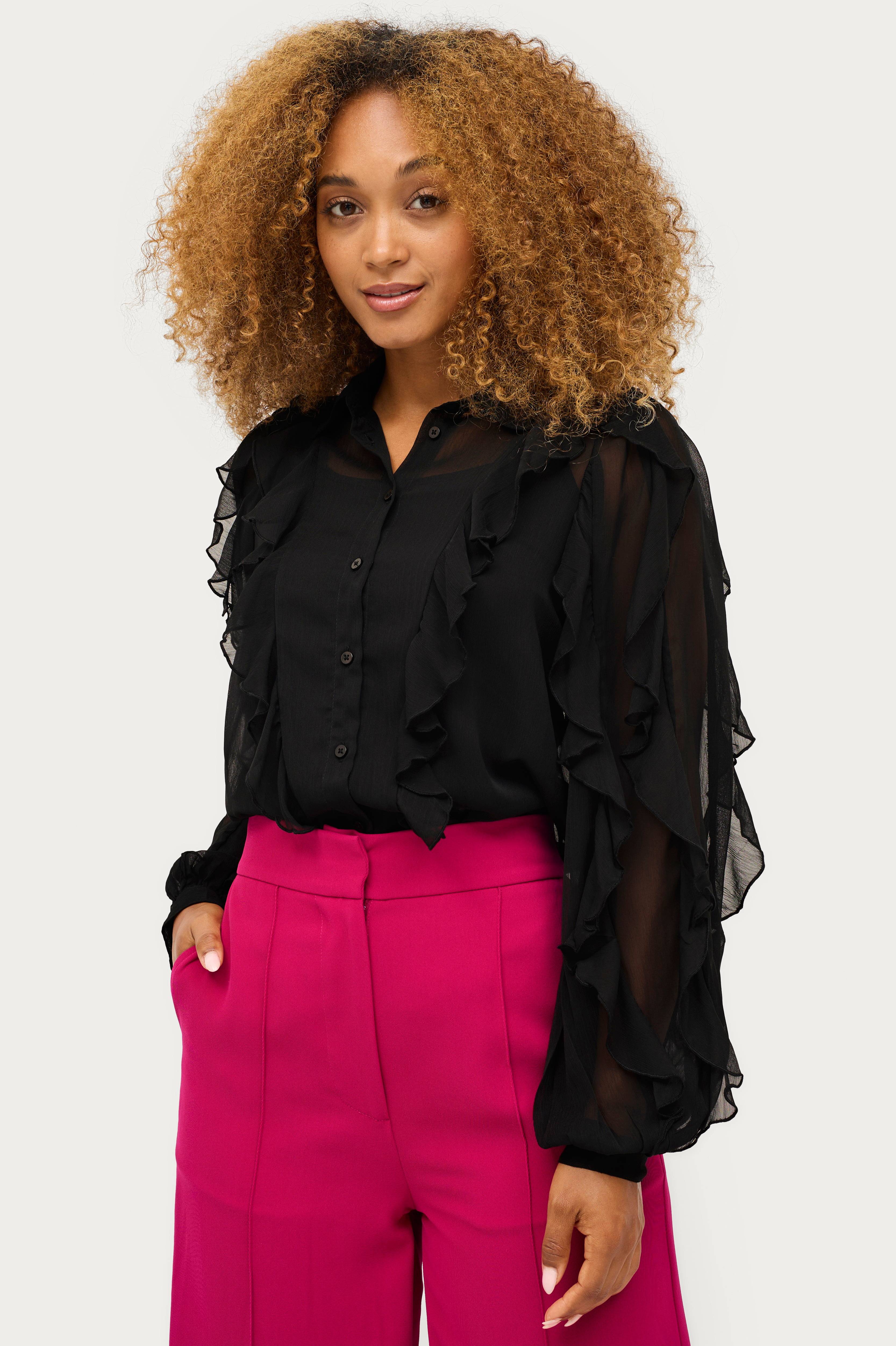 En veldig fin bluse, vakre farger. Ser både skjør og festlig ut med volangene. Er veldig fornøyd!