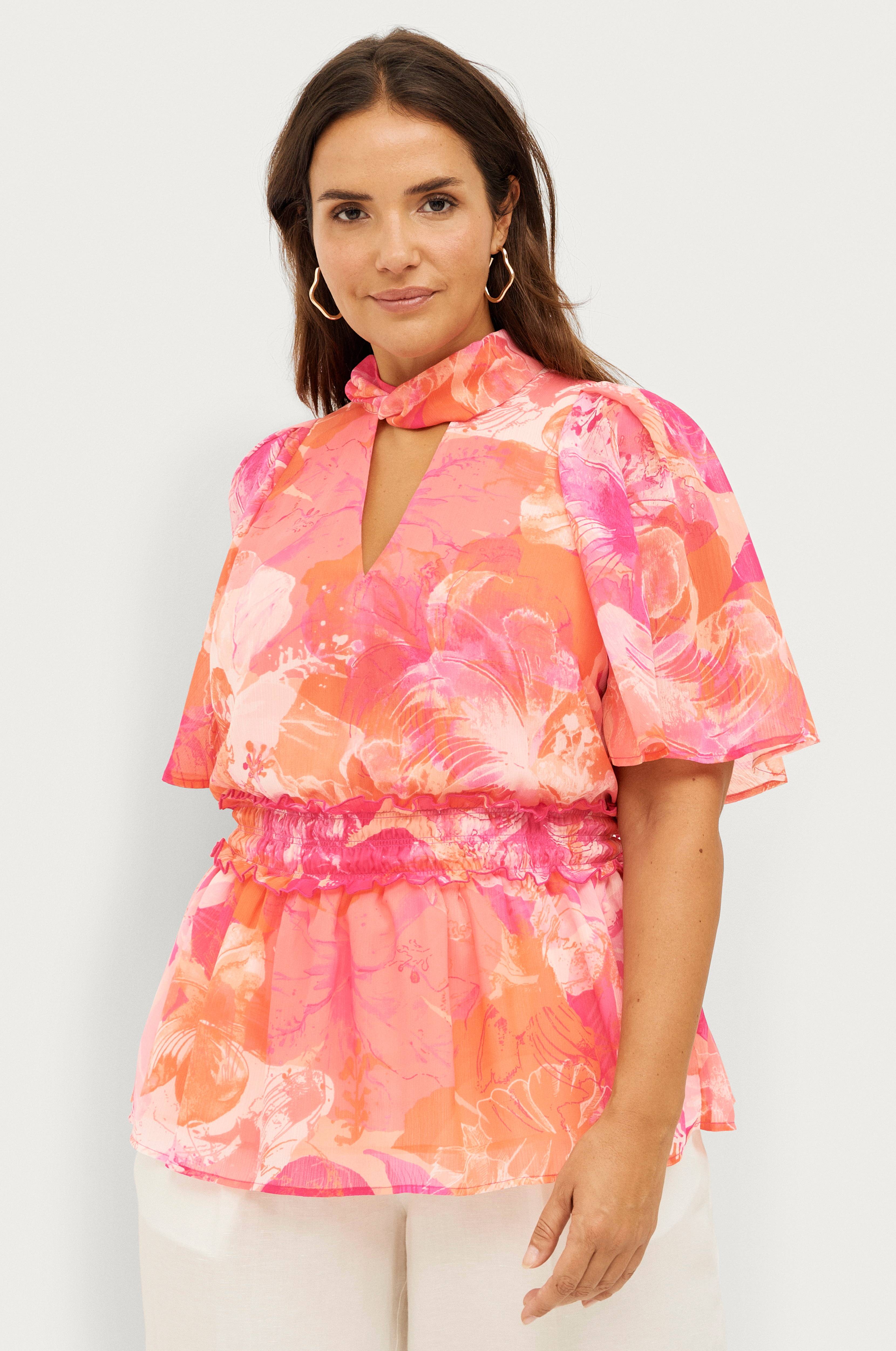 - Halvhøy hals med splitt foran og bak og knapper i nakken