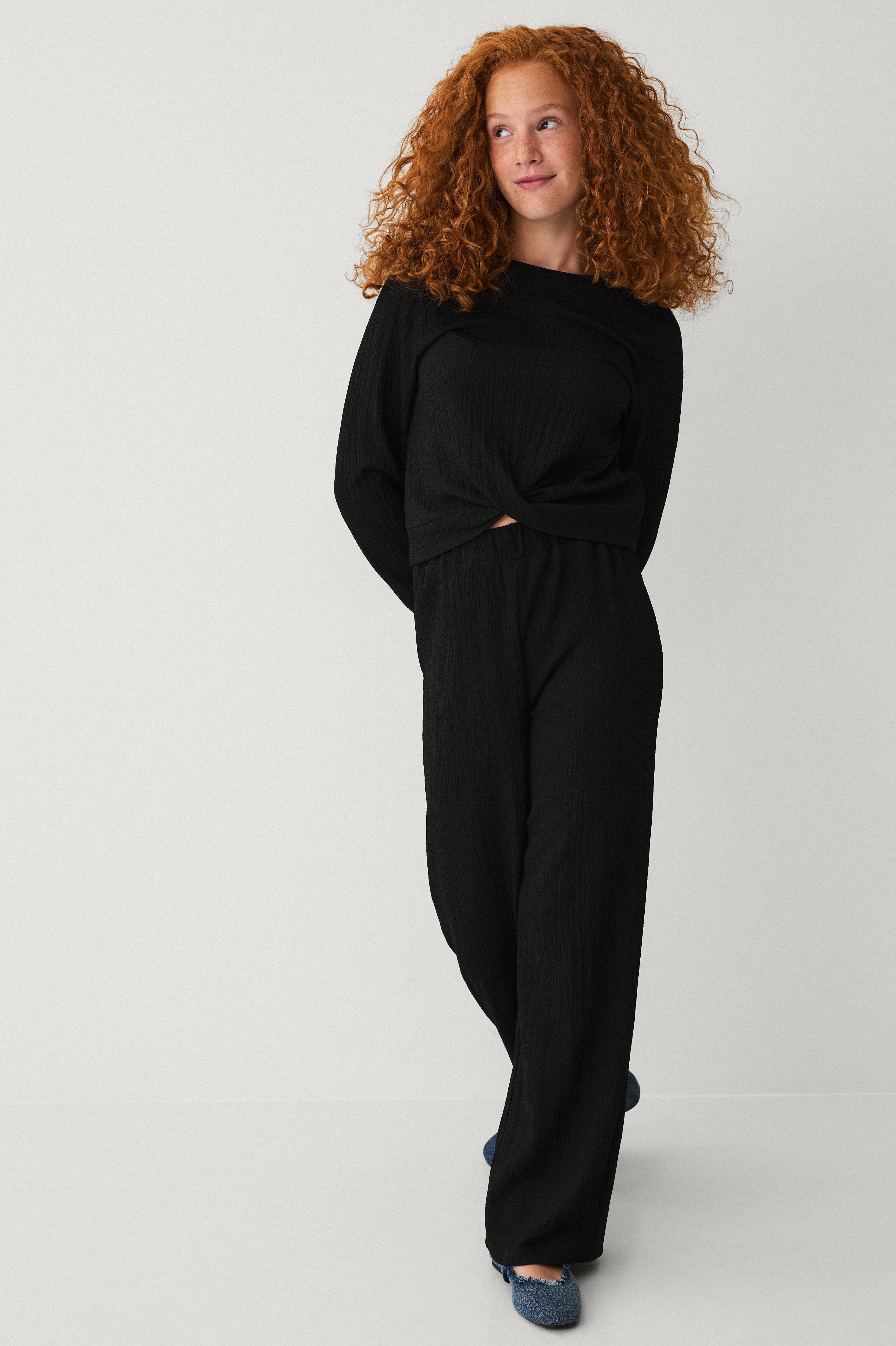 • Brede bukser• Normalhøy, elastisk midje• Normal passform