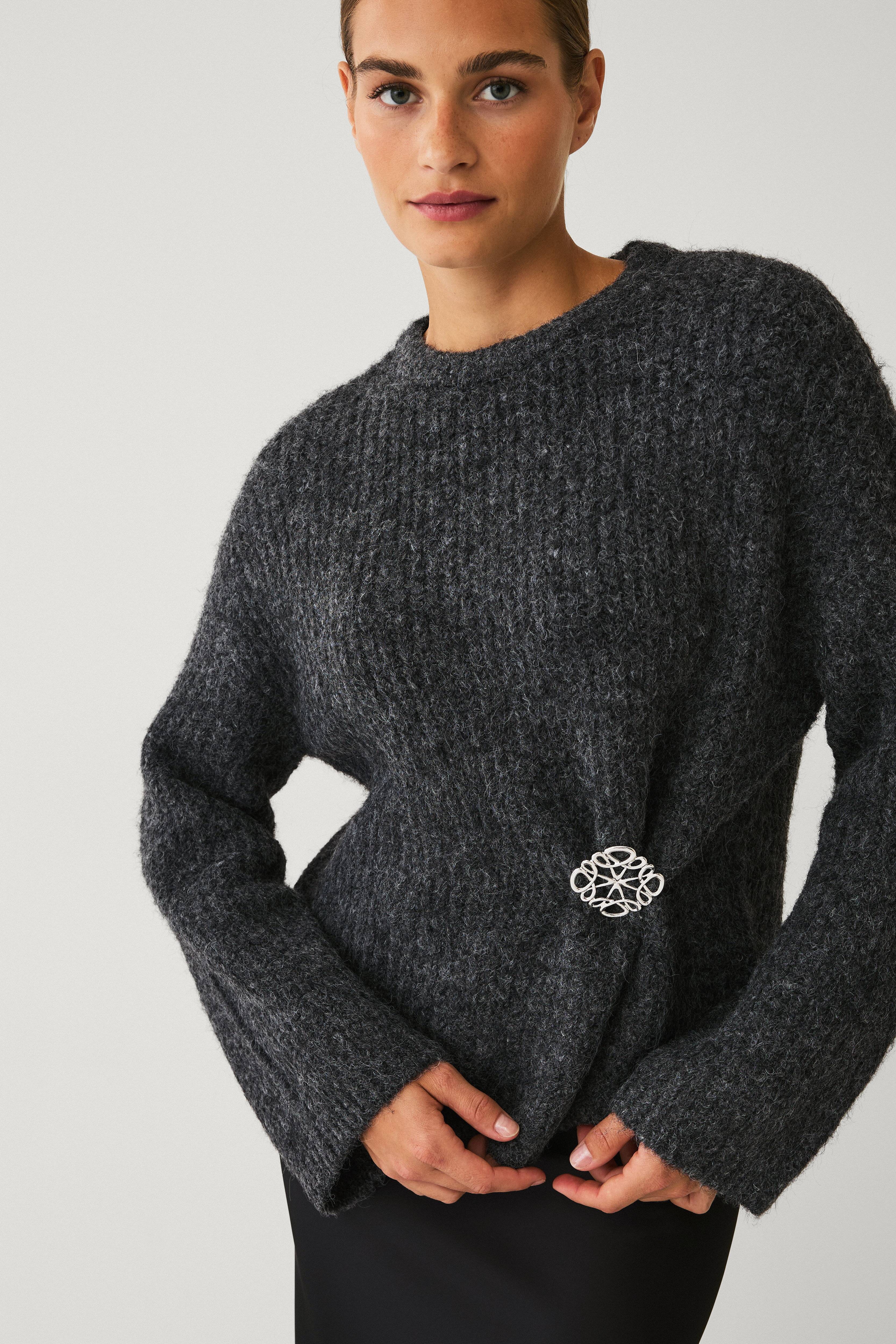 Fin brosje, godt spenne, fin å sette sammen en knappløs cardigan eller drapere en finstrikket genser med.