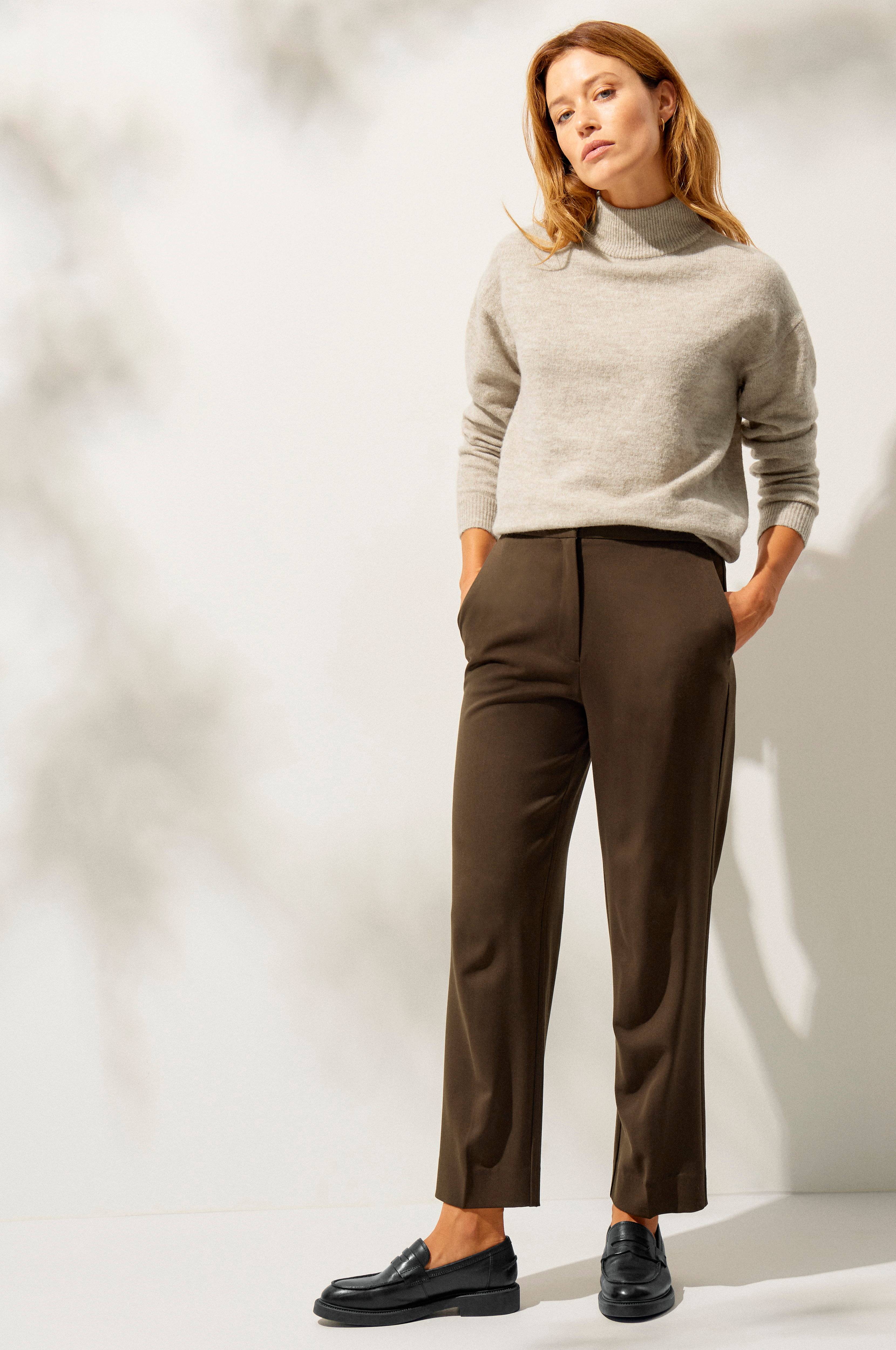 • Høy midje• Ankellange, forsiktig snevrede bein• Lommer i sidene• Jukselommer bakpå• Lukking med hekte og malje