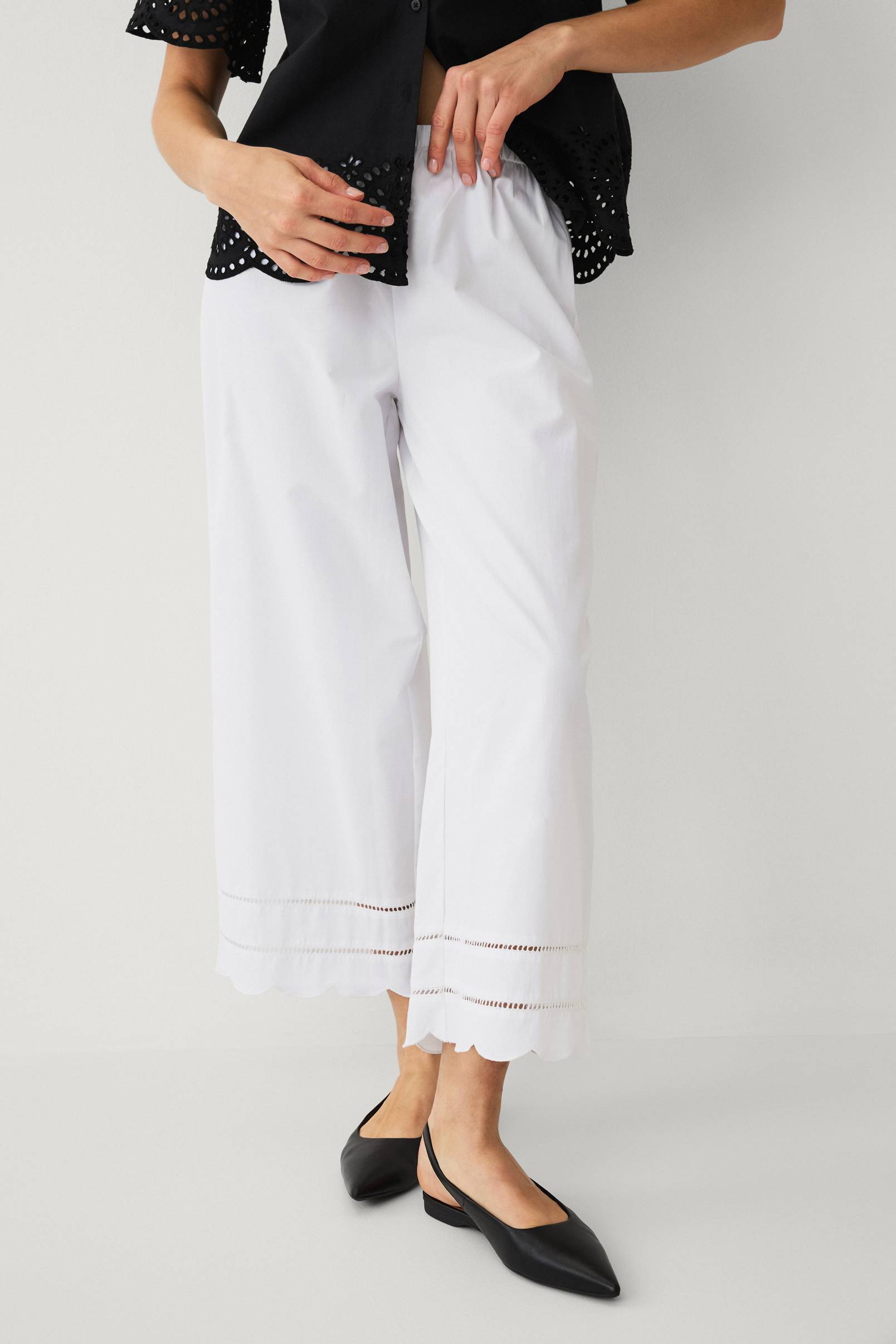 • Brede bukser i vevd bomullsblanding