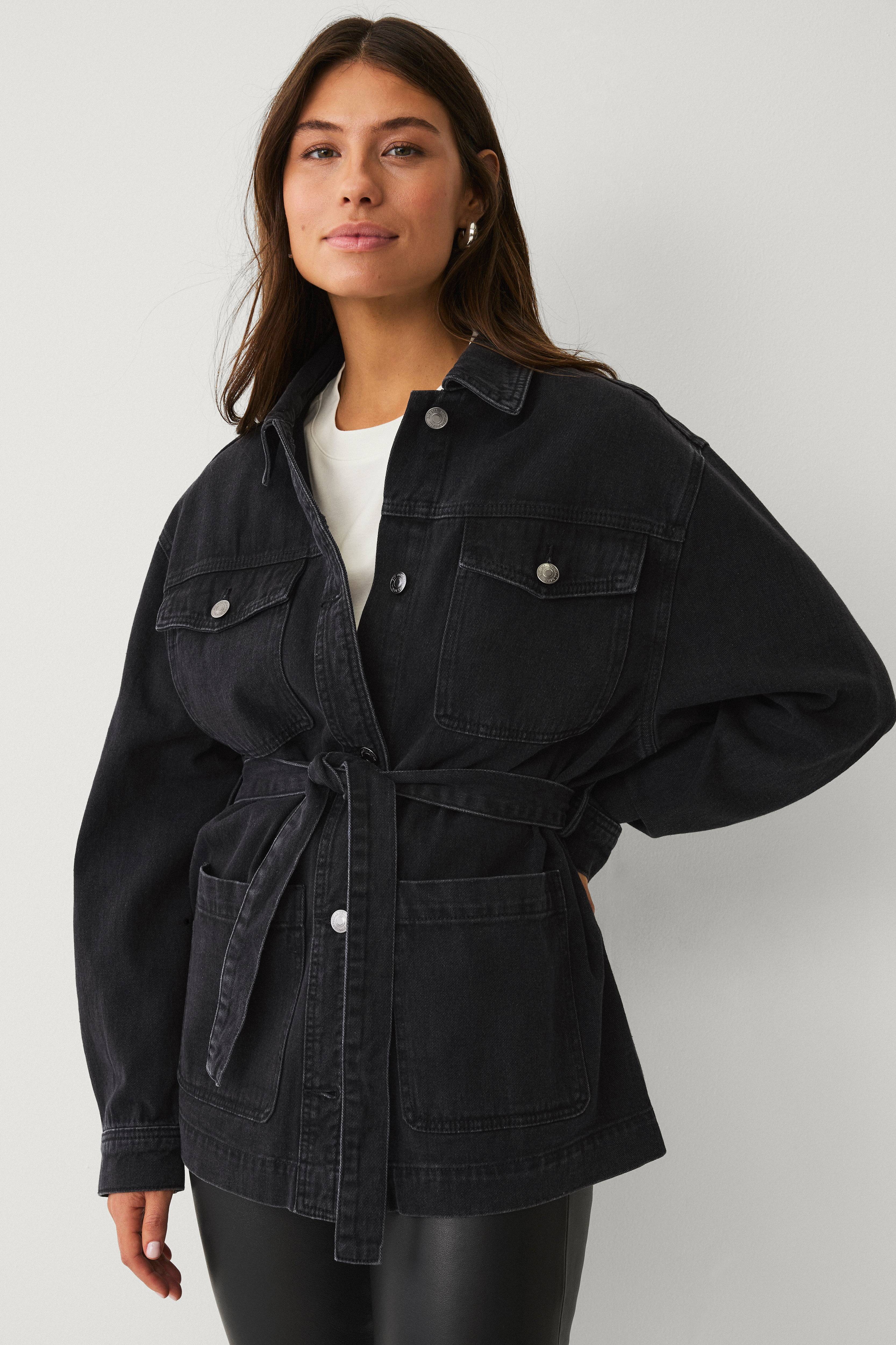 • Denimjakke / skjortejakke i oversized stil• Metalliske knapper• To frontlommer• To brystlommer med kneppbar lommeklaff• Avtakbart knytbart belte ved midjen• Knapp i ermeslutten• Lengde: 74 cm i størrelse 38/40