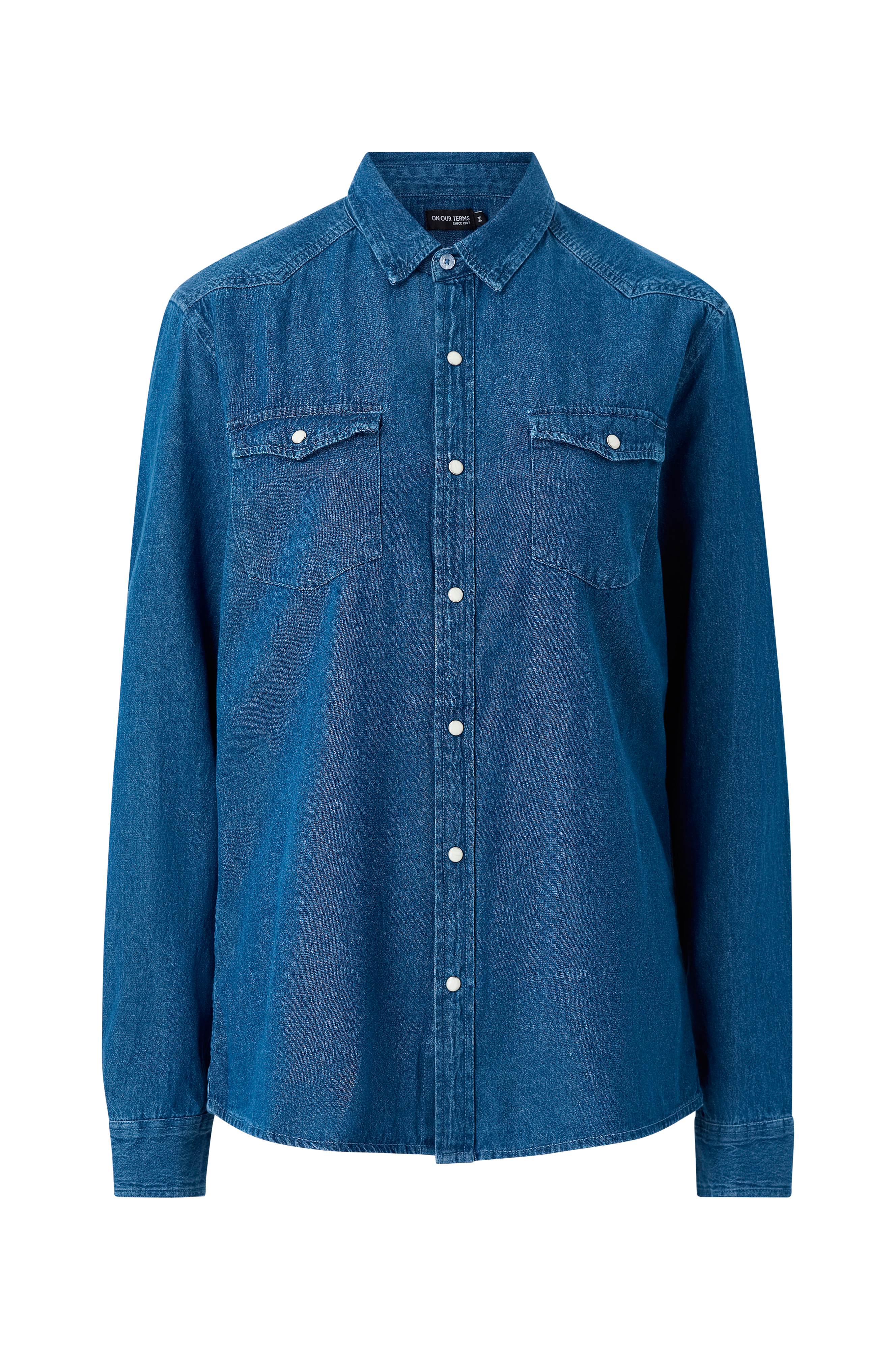 • Litt tynnere denimskjorte i bomull• Trykknapper foran• Brystlommer med lokk• Avrundet hem