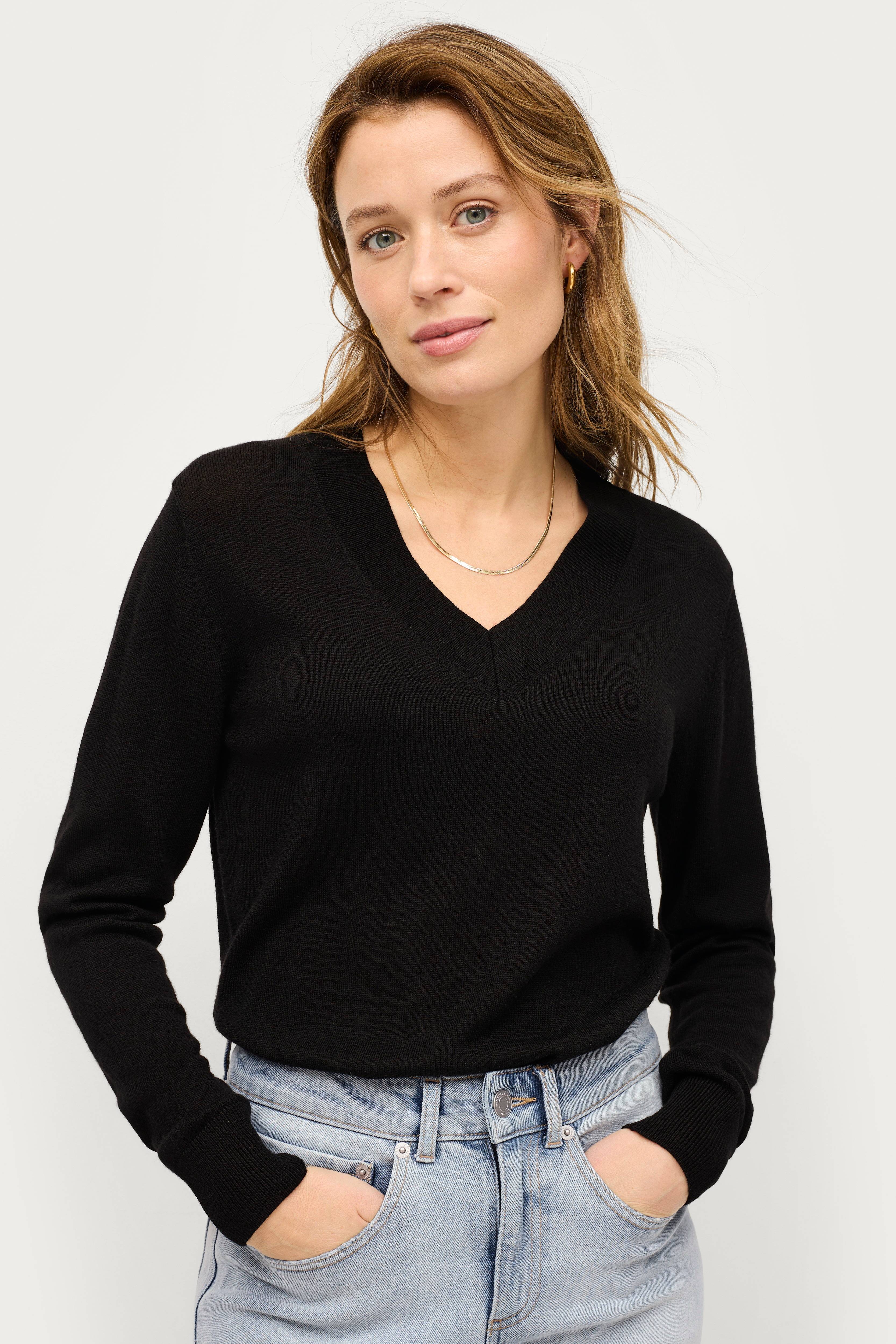 Ellos Collection Finstrikket ullgenser med v-hals