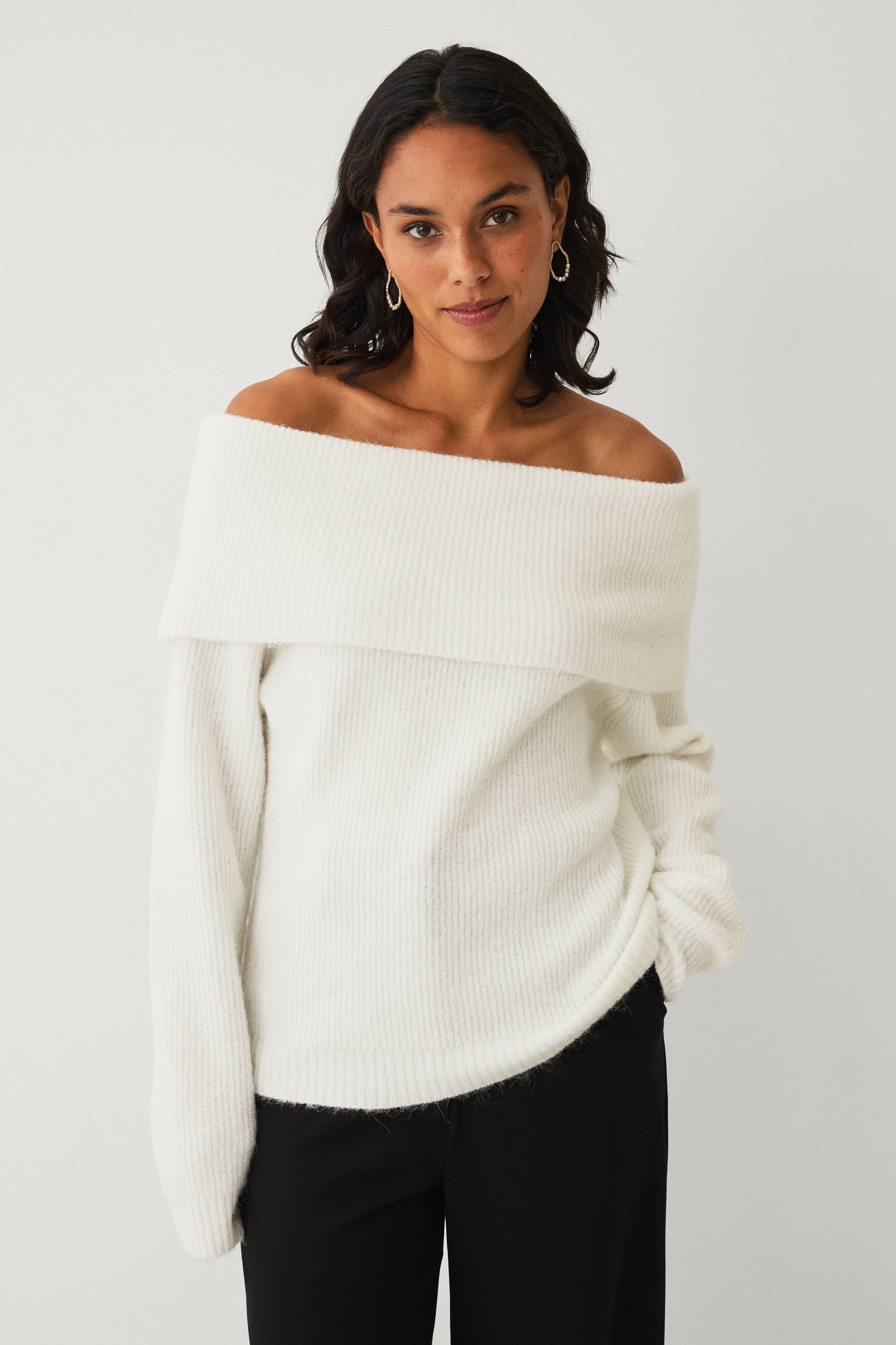 • Myk, ribbestrikket genser med bare skuldre