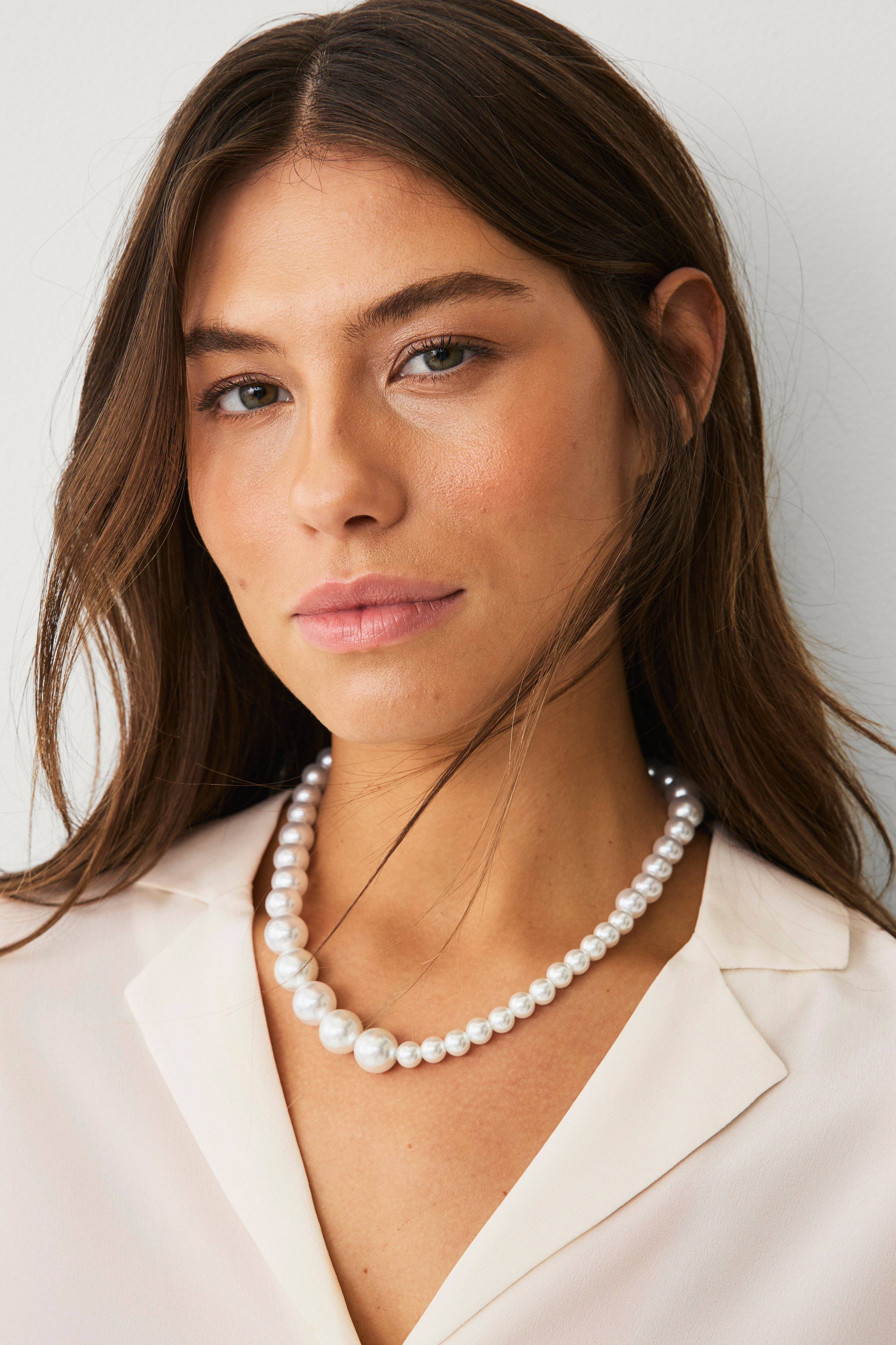 Morsomt at det er ujevne perler. Blir et mer levende halskjede.