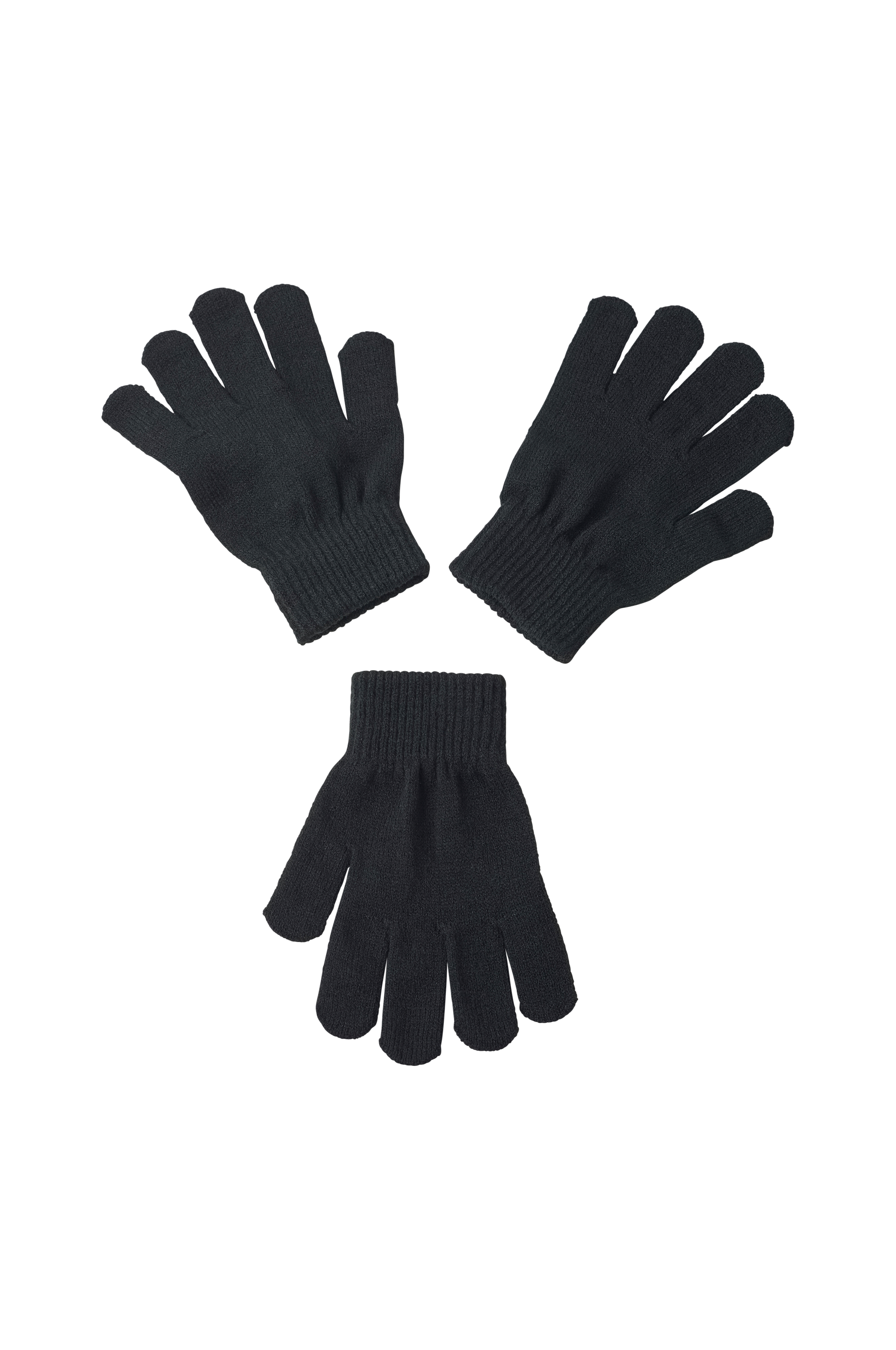 • 3-pakke, strikket hansker• Ribbet mansjetter•