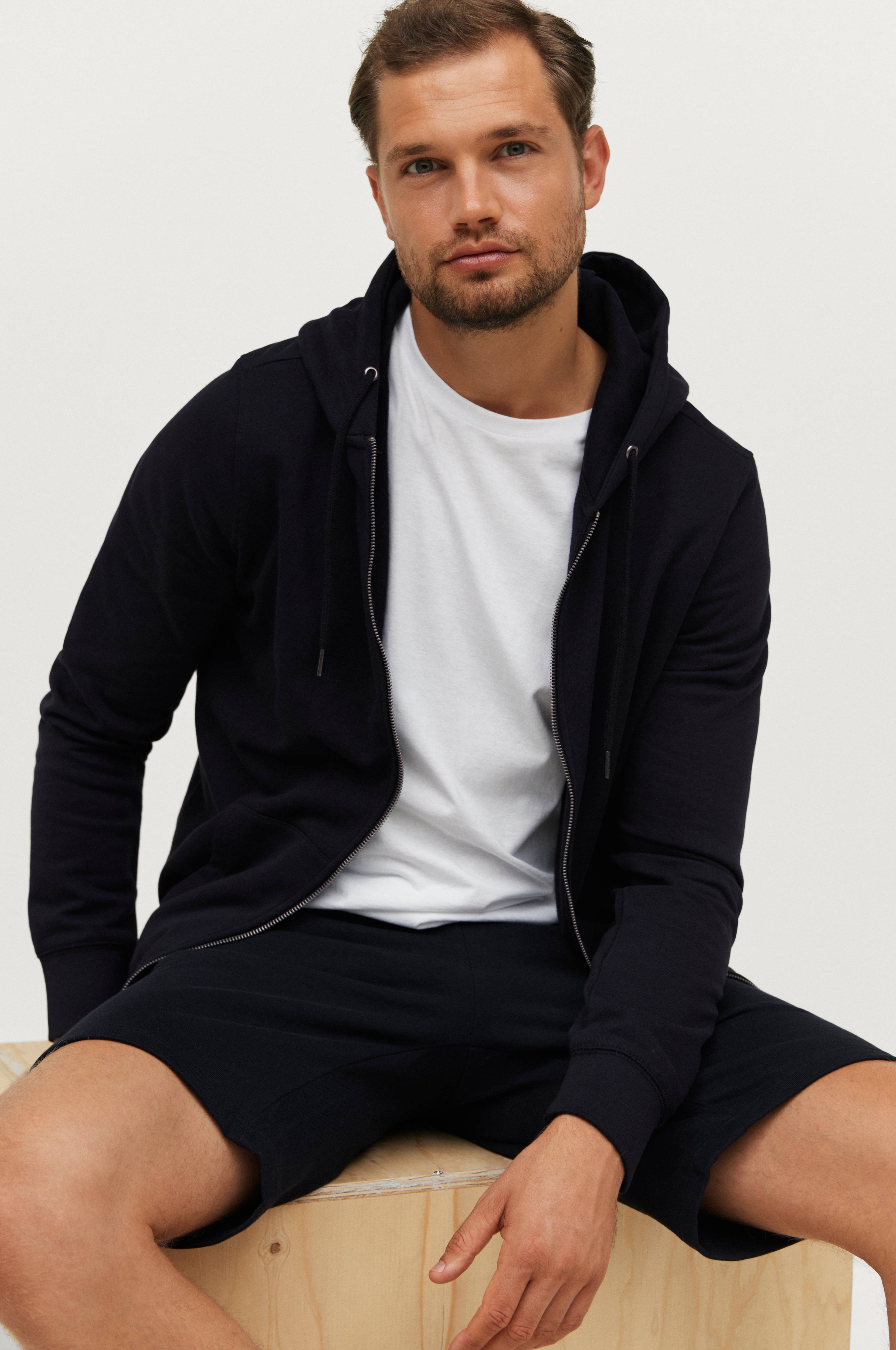 Modellen er 189 cm høy og har på seg størrelse M